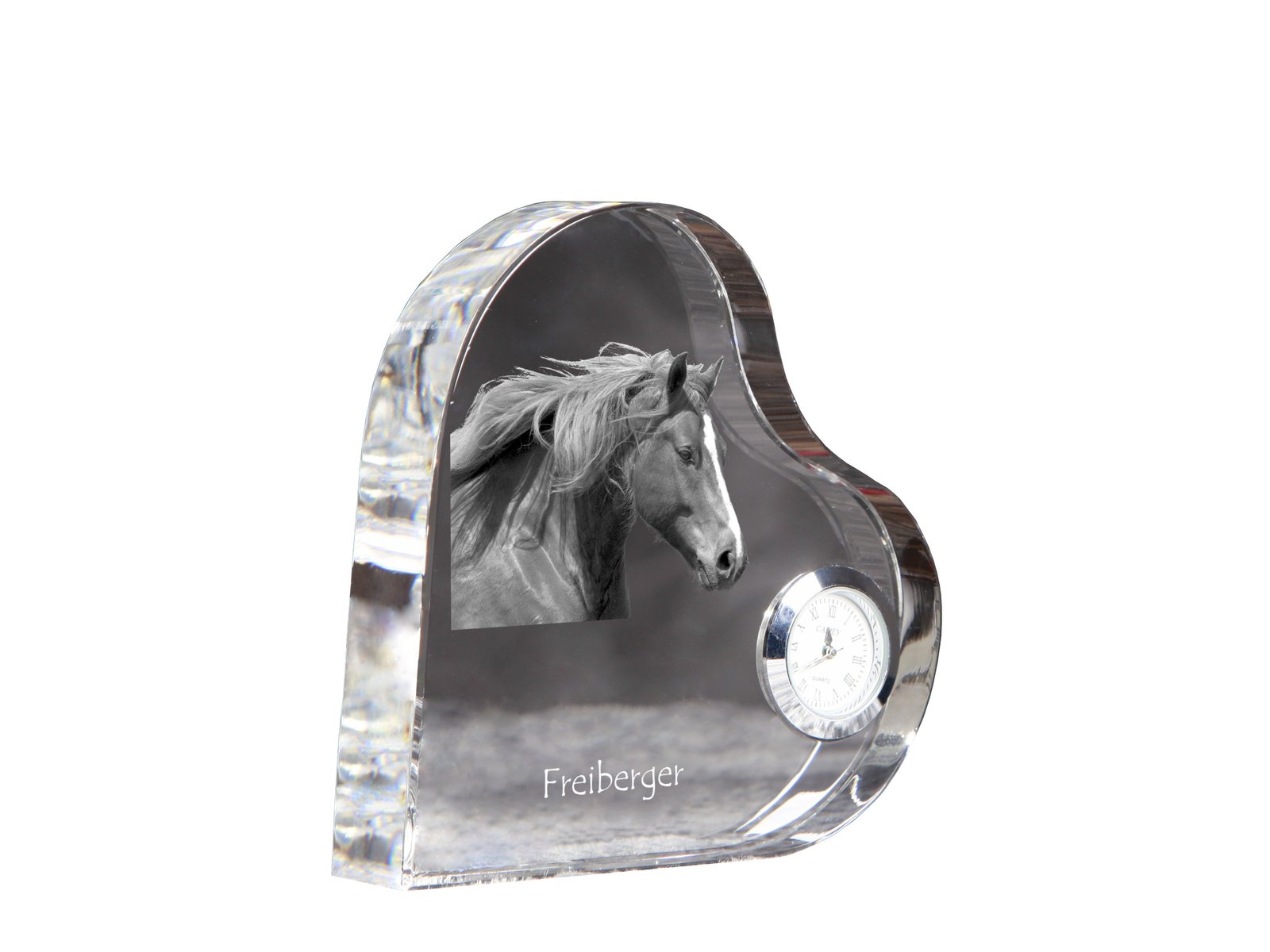 Pradžia Gyvūnams Arkliams Freiberger – Krištolo laikrodis su arklio nuotrauka