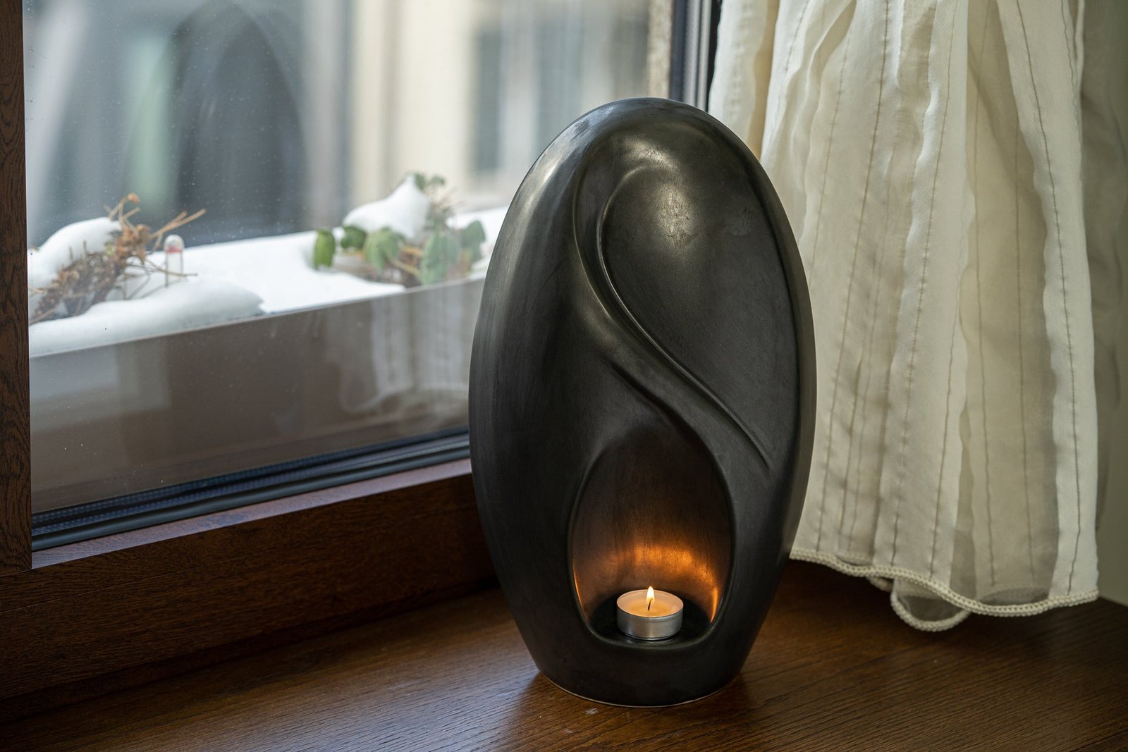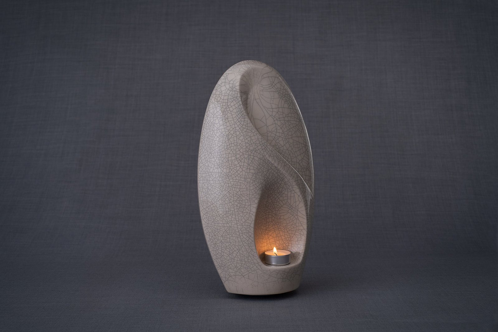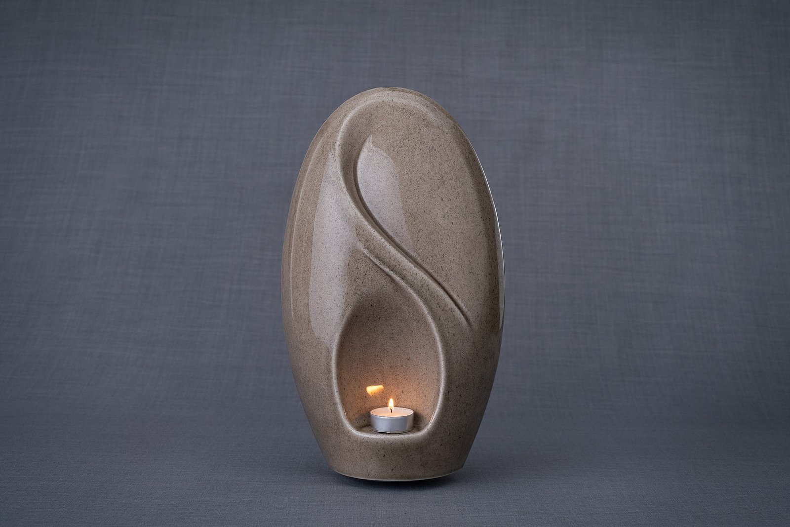 Keraminė urna pelenams su švelniomis formomis ir natūraliais tonais. Gamybos metu galimi nežymūs spalvų ir raštų skirtumai. Pristatymas per 5–7 darbo dienas.