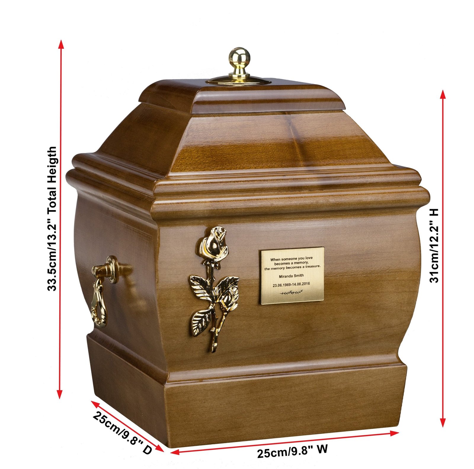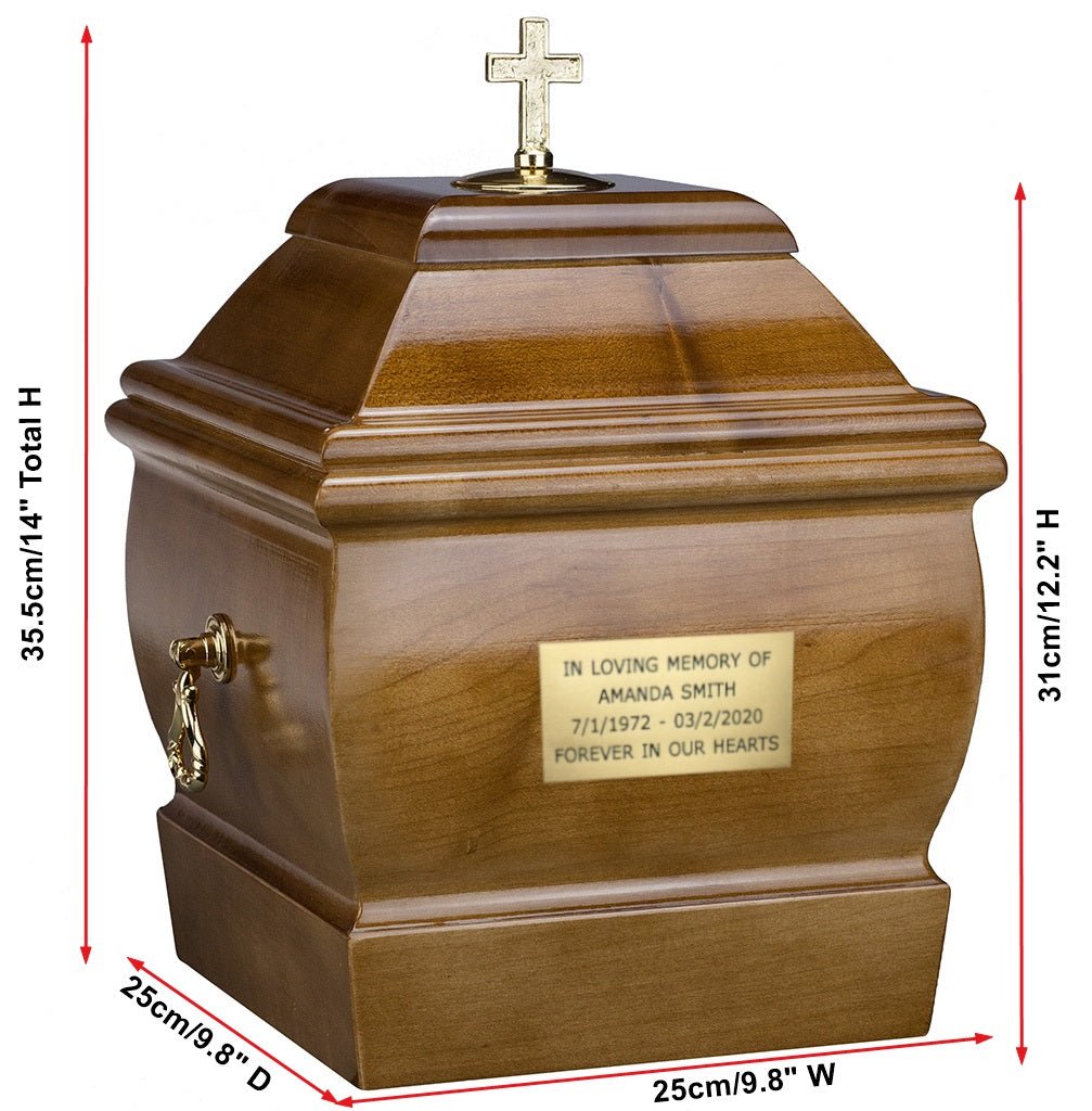 Medinė urna pelenams iš natūralios medienos. Medienos raštai ir spalvos gali natūraliai skirtis, todėl kiekviena urna yra unikali. Pristatymas per 5–7 darbo dienas.