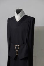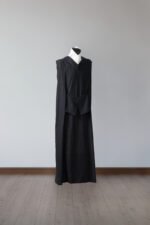 Sodri juoda spalva suteikia drabužio siluetui tylumos, susikaupimo ir orumo pojūtį.