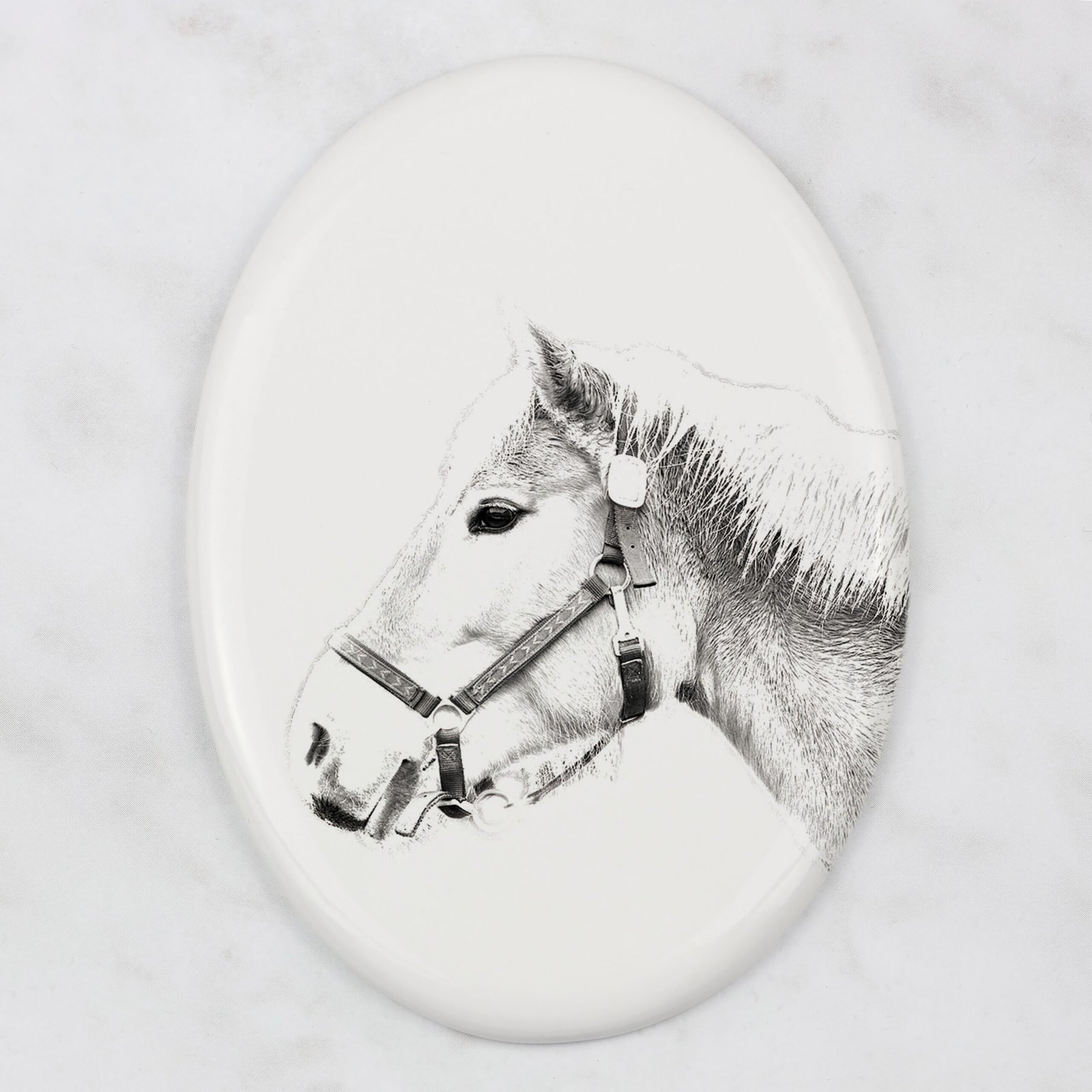 Pasiūloje yra paruošti šunų, kačių ir arklių atvaizdų projektai. Plytelės yra pritaikomos – galime atspausdinti tavo augintinio nuotrauką. Atspaudą atliksime pagal tavo nurodymus arba spalvotą, arba pakeistą į „pieštuko eskizo” versiją, matomą šioje pasiūloje. Ant plytelės taip pat galime užrašyti tavo augintinio vardą ir gyvenimo laikotarpį.