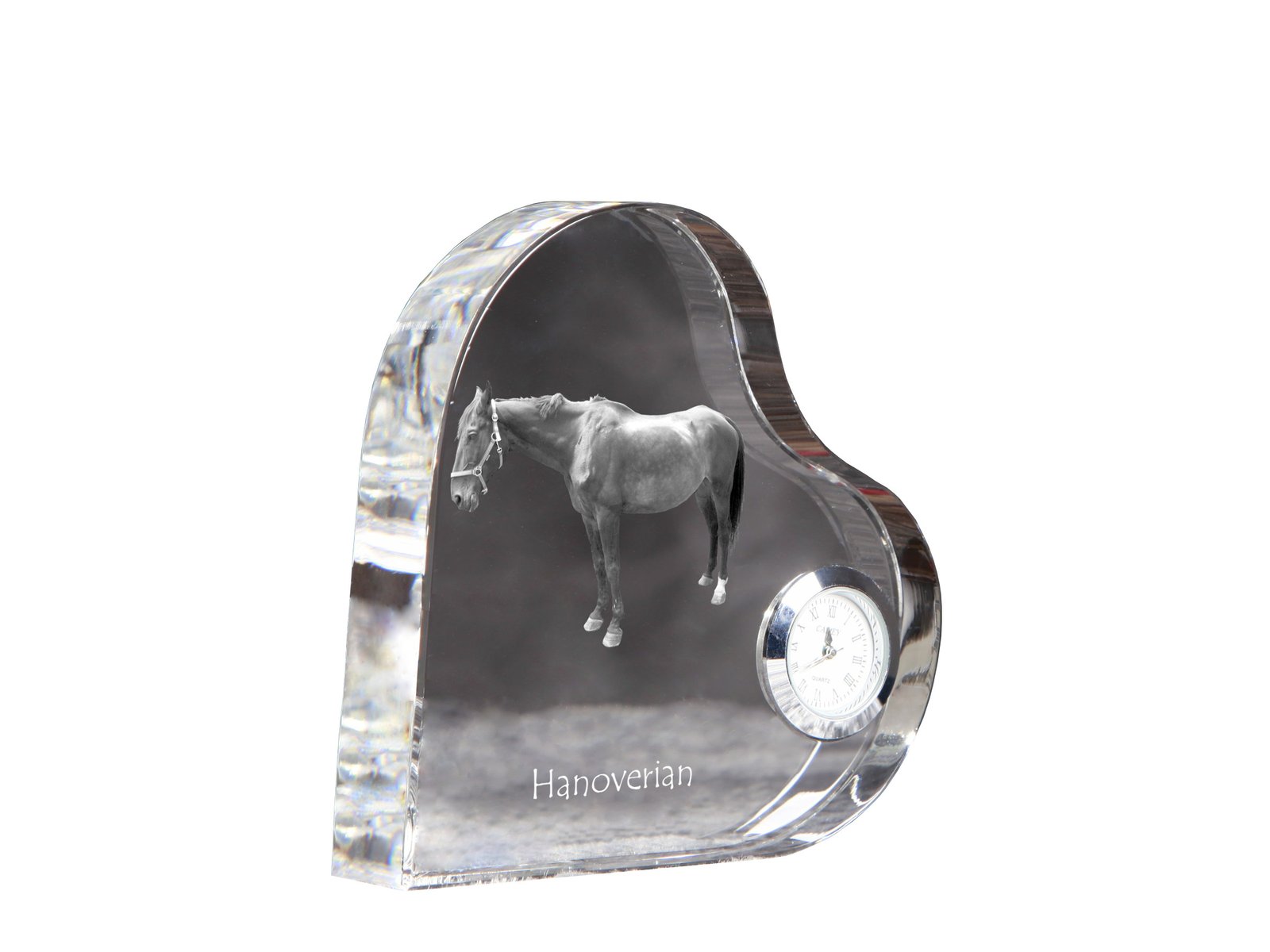 Pradžia Gyvūnams Arkliams Hanoverių veislės – Krištolo laikrodis su arklio nuotrauka