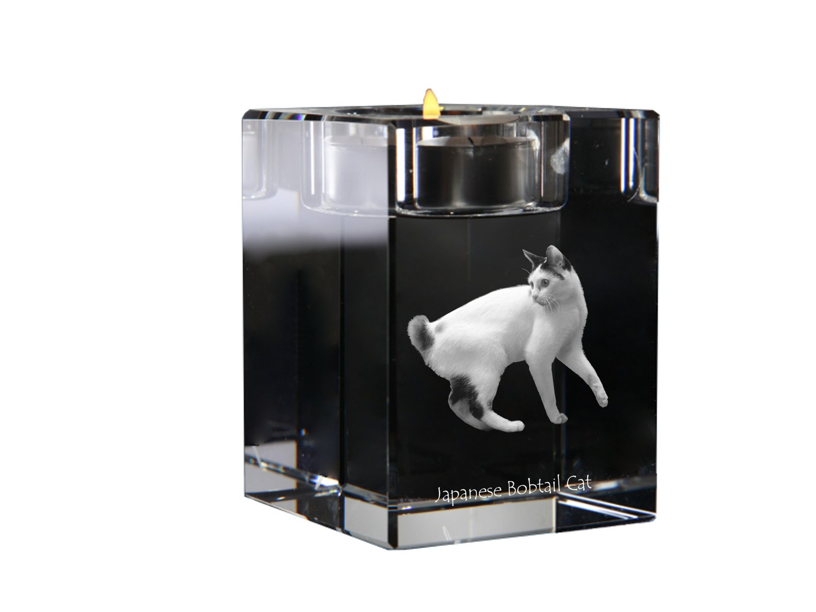 Japonų trumpauodegė katė (Japanese Bobtail cat) – Žvakidė su katės nuotrauka