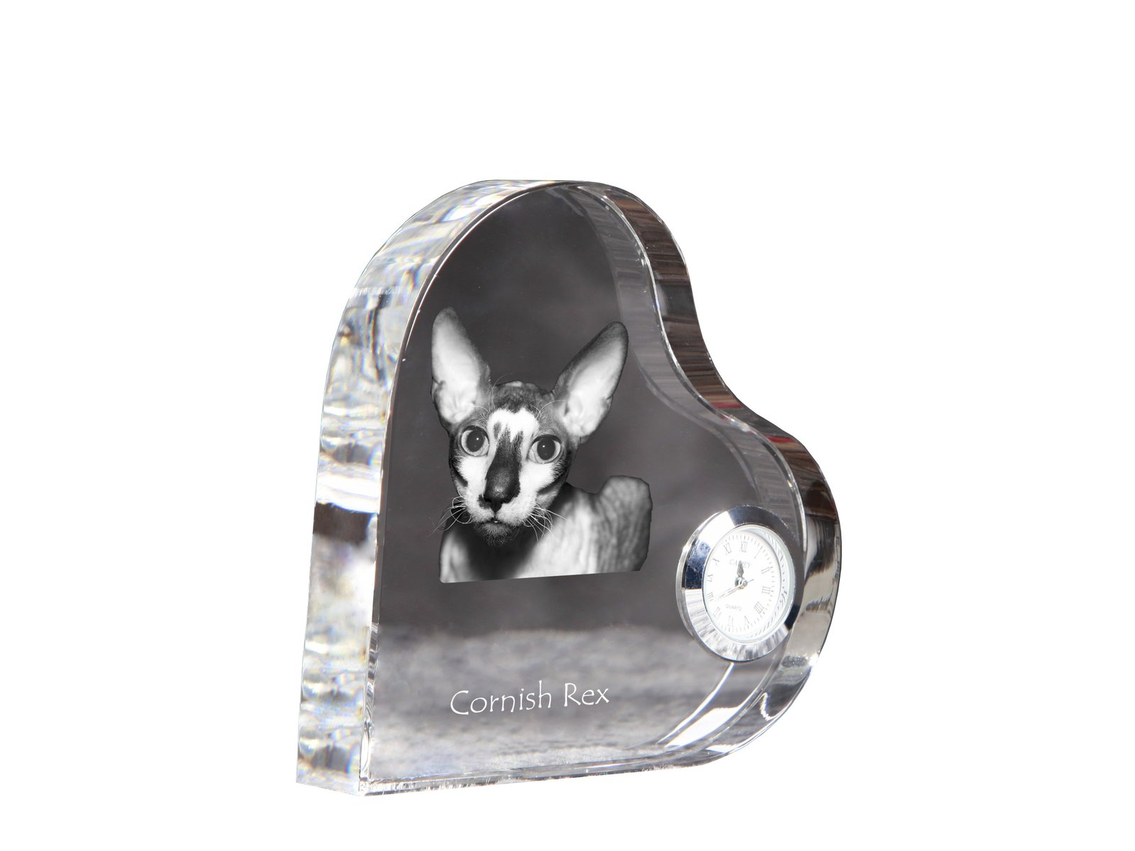 Pristatome elegantišką kristalinį širdies formos laikrodį, kuris taps ypatingu papuošalu kiekvienoje lentynoje, palangoje ar darbo stalo. Pagamintas iš aukštos kokybės kristalo, laikrodis pasižymi neįtikėtina skaidrumu ir puikiu apdaila. Kristalo viduje yra įamžinta gyvūno nuotrauka, kurią galima pritaikyti asmeniškai, atsiunčiant mums jūsų augintinio nuotrauką. Dėl šios priežasties kiekvienas laikrodis tampa unikalus ir asmeninis.