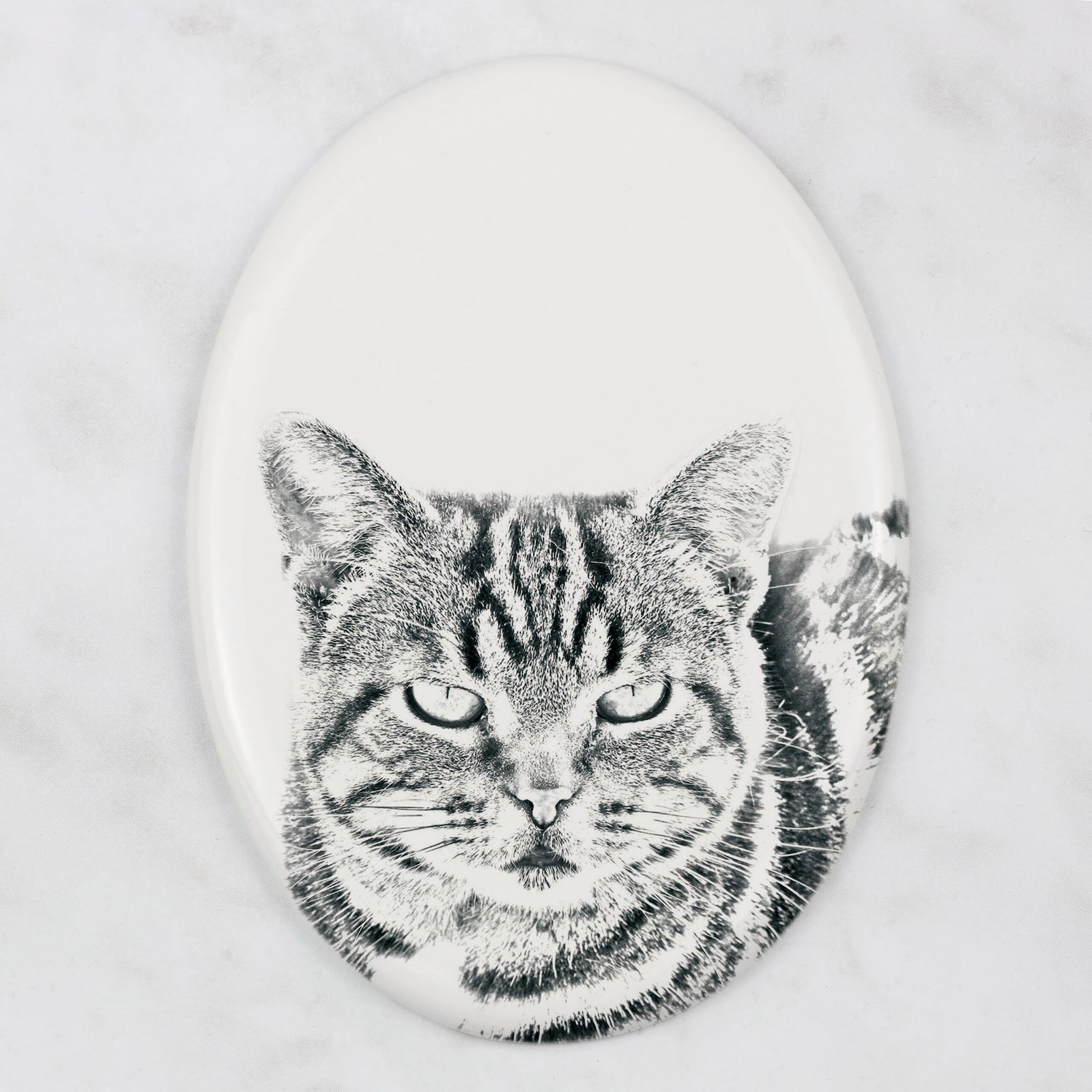Pasiūloje yra paruošti šunų, kačių ir arklių atvaizdų projektai. Plytelės yra pritaikomos – galime atspausdinti tavo augintinio nuotrauką. Atspaudą atliksime pagal tavo nurodymus arba spalvotą, arba pakeistą į „pieštuko eskizo” versiją, matomą šioje pasiūloje. Ant plytelės taip pat galime užrašyti tavo augintinio vardą ir gyvenimo laikotarpį.