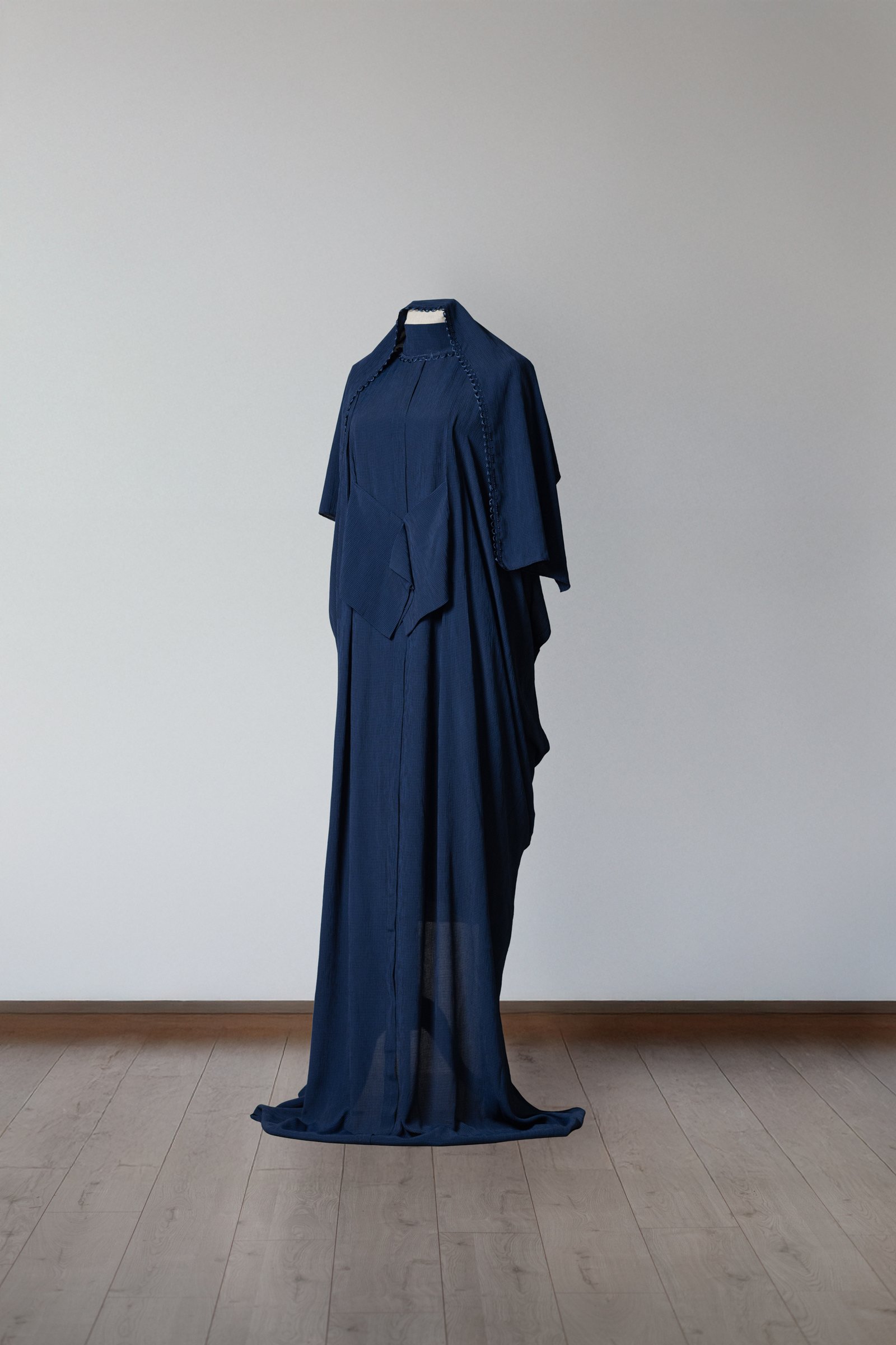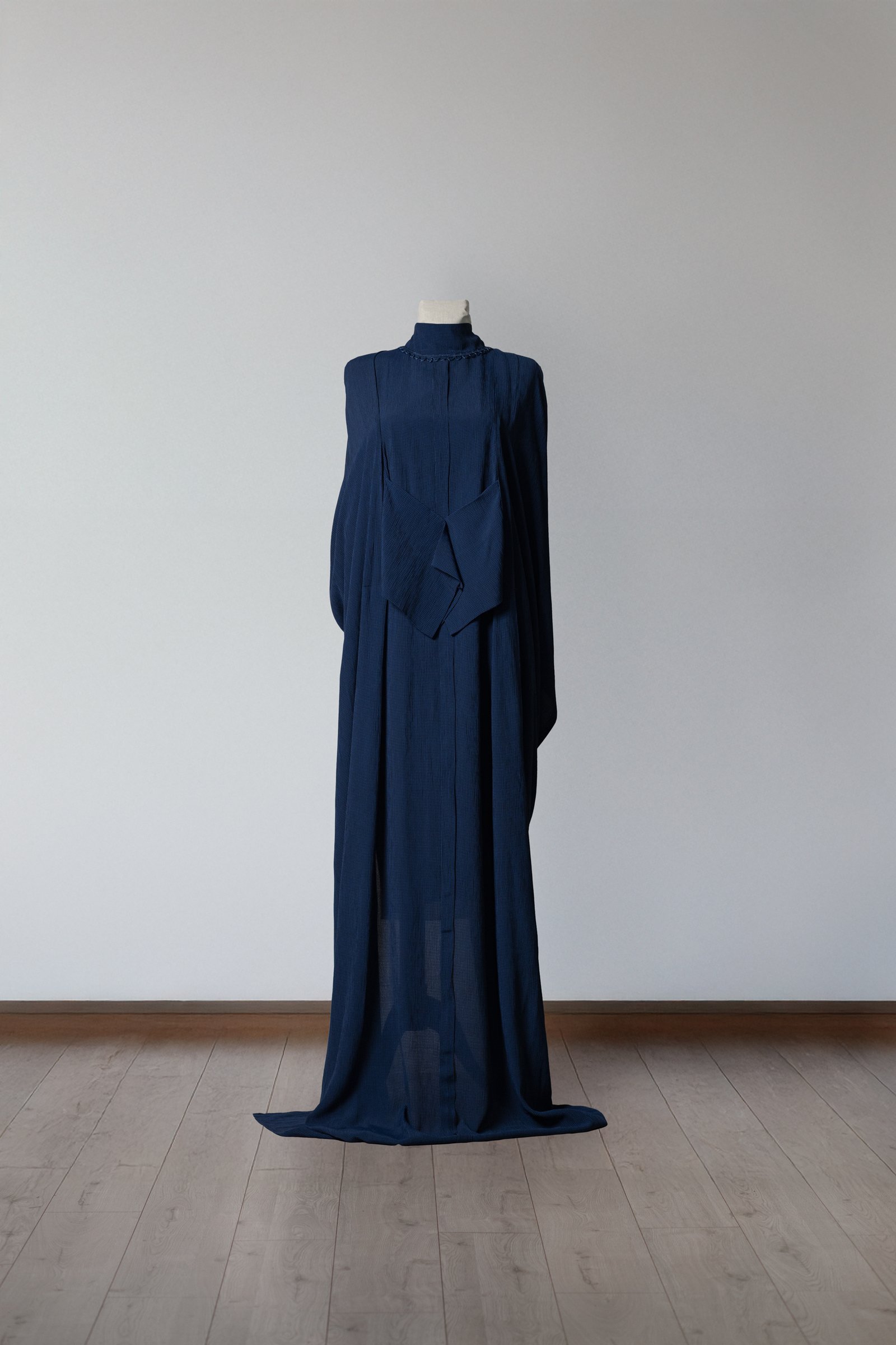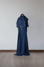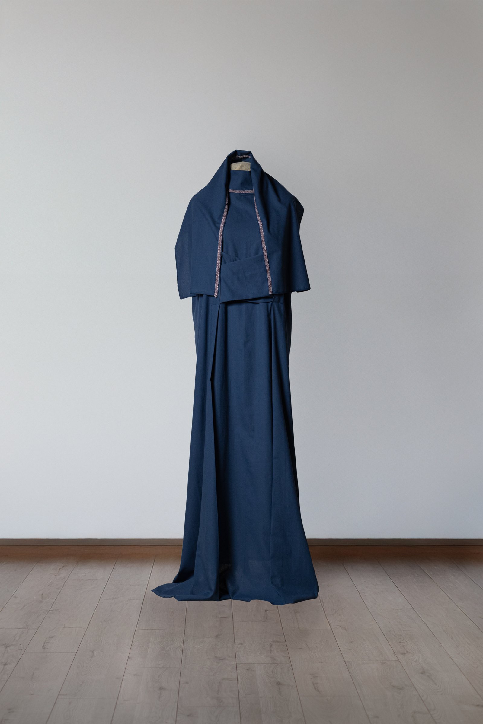 Mėlynos spalvos laidotuvių suknelė, skirta ramiam ir oriam atsisveikinimui.