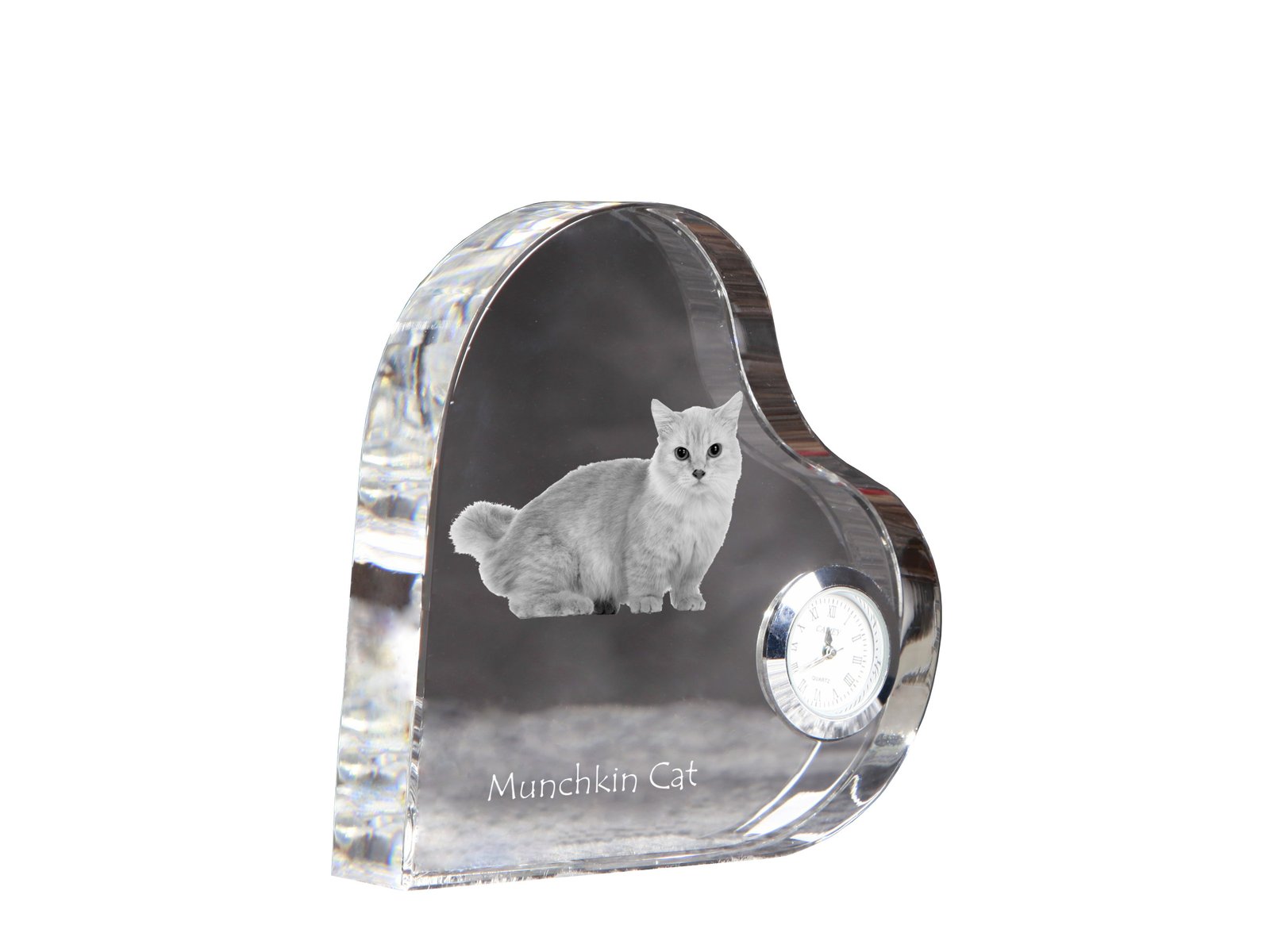 Munčkinas (Munchkin cat) – Krištolo laikrodis su katės nuotrauka