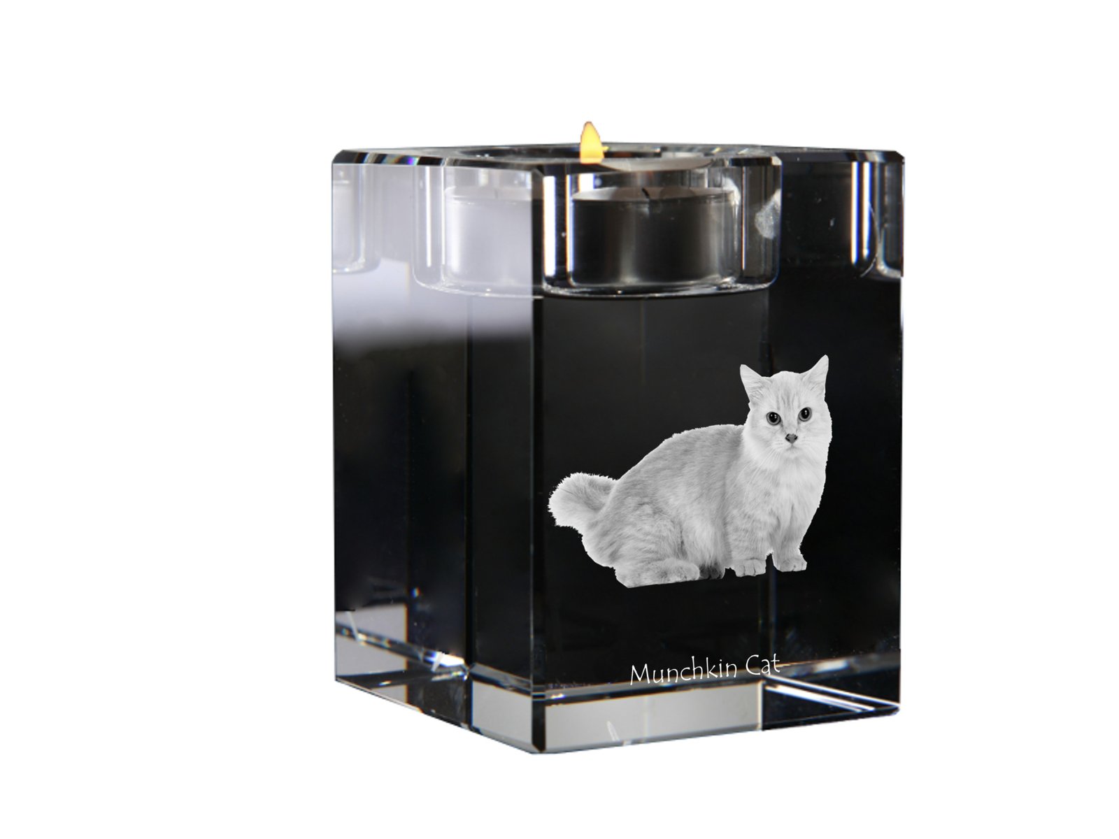 Pradžia Gyvūnams Katėms Munčkinas (Munchkin cat) – Žvakidė su katės nuotrauka