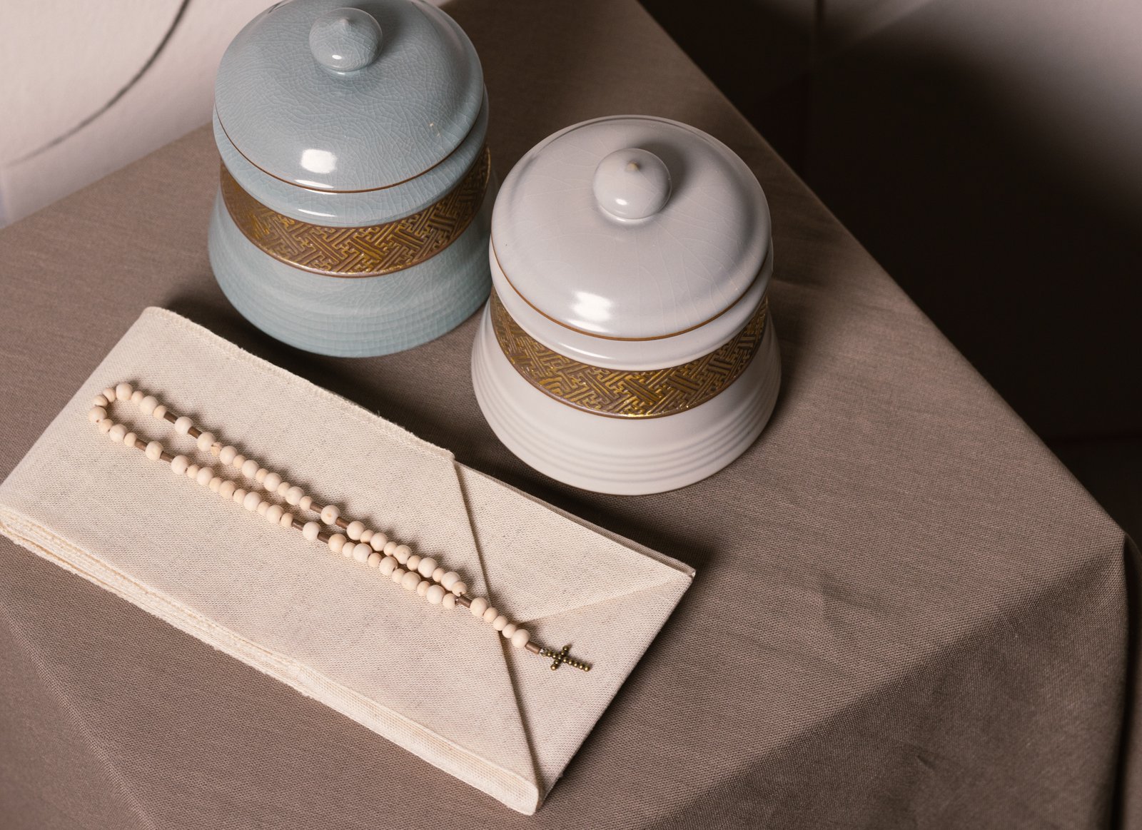 Šis rožinis pagamintas iš šiltų, natūralaus medžio karoliukų – tai paprastas, bet prasmingas prisilietimas prie atsisveikinimo ritualo.