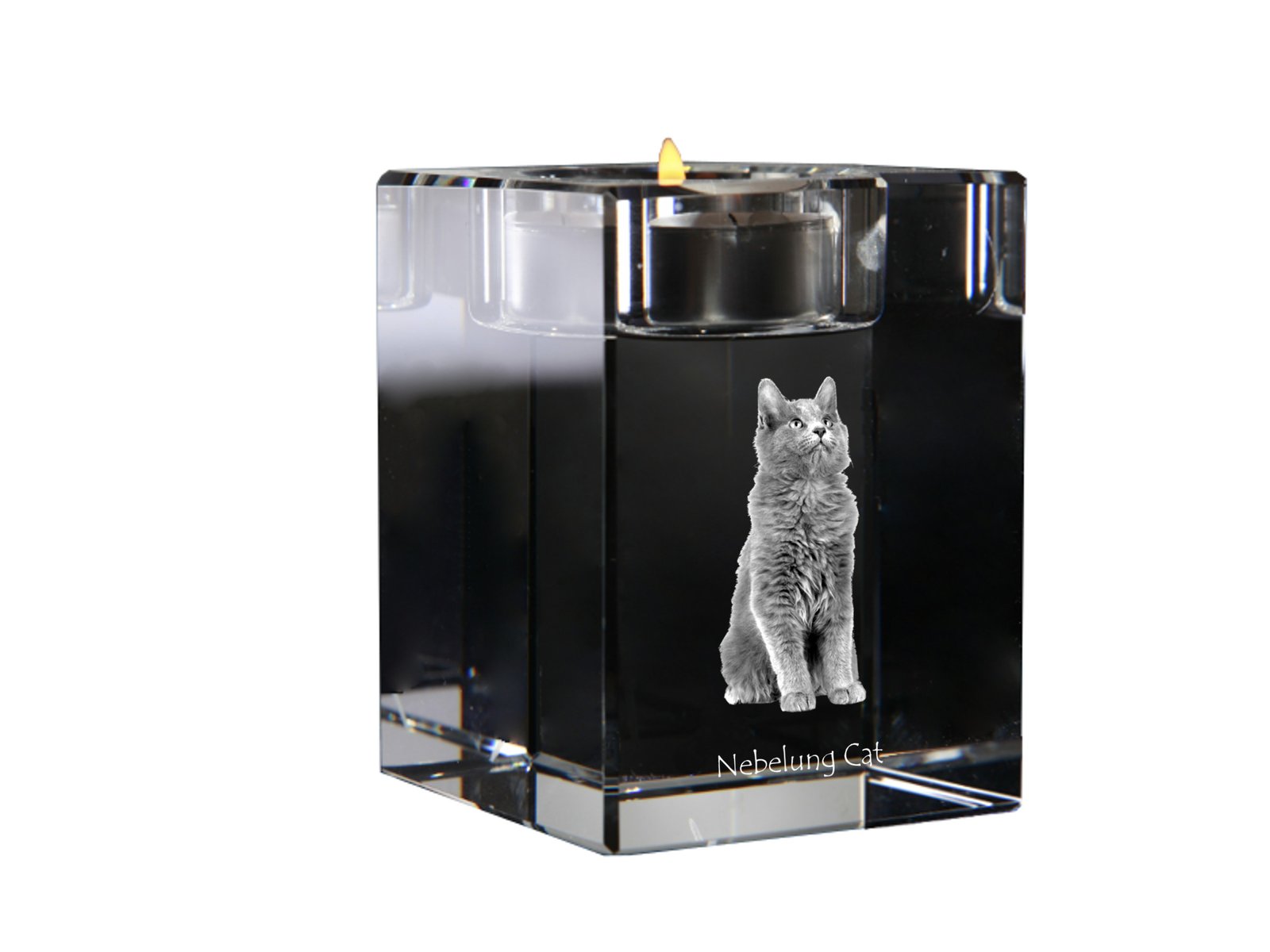Pradžia Gyvūnams Katėms Nebelungas (Nebelung cat) – Žvakidė su katės nuotrauka
