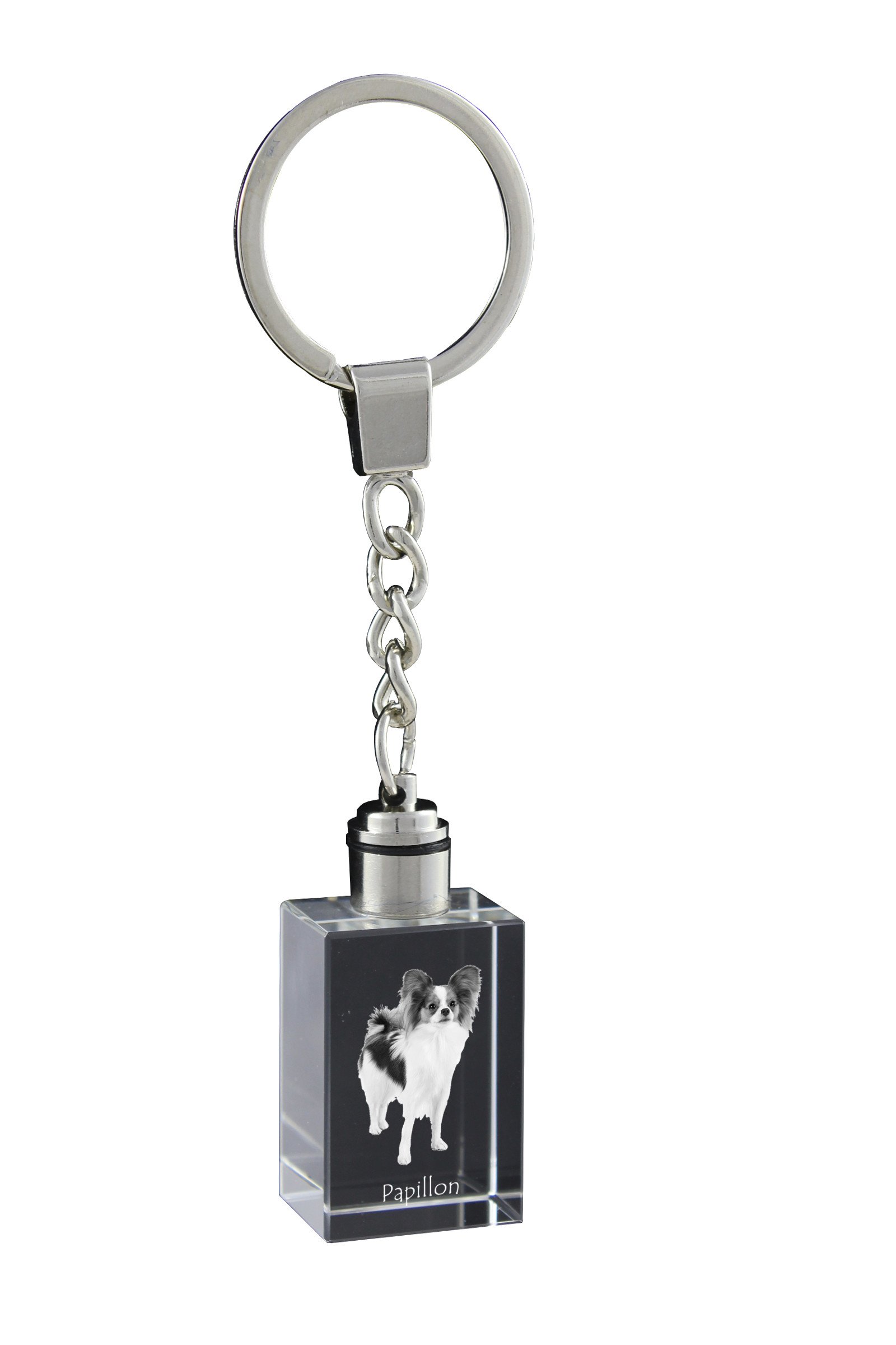 Papiljonas (Papillon dog) – Krištolinis raktų pakabukas su šuns nuotrauka