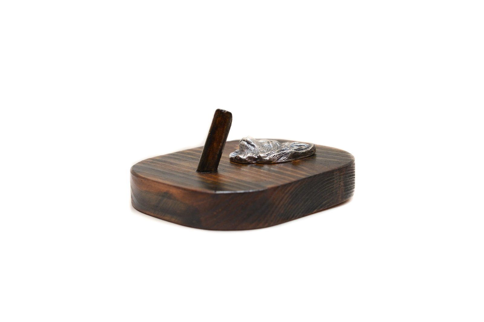 Pristatome išskirtinį medinį šunų tema kabliuką – rankų darbo ir unikalų dekoratyvinį elementą, kuris pridės elegancijos ir praktiškumo jūsų interjerui. Pagamintas iš pušies medžio, kabliukas papuoštas sidabruotu šunų reljefu, išsiskiriančiu tikslumu ir meistriškumu. Jis gali būti naudojamas kaip įprastas drabužių kabliukas, puikiai tinka šunų pavadėliams ir aksesuarams, taip pat parodų laimėtiems medaliams ar raktams. Jo universalumas ir elegantiškas dizainas padaro jį puikiu dovanų pasirinkimu kiekvienam šunų mylėtojui!