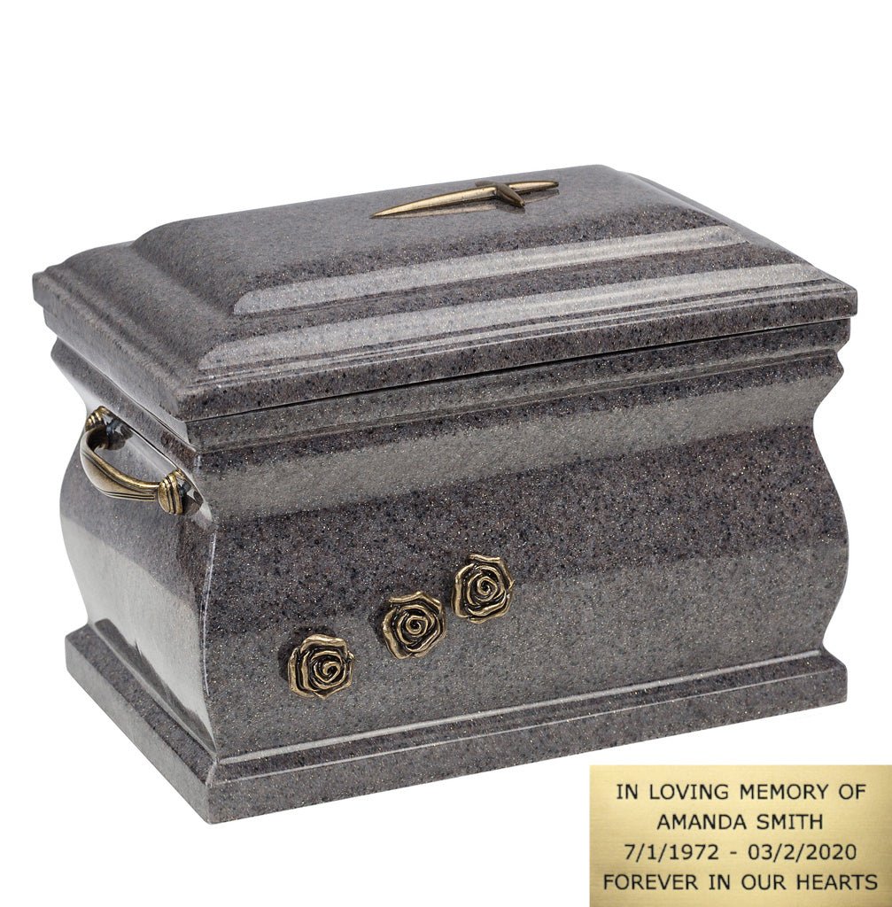 Dekoruotos urnos sukurtos norint suteikti ypatingą simboliką ir estetinį išskirtinumą. Ornamentai — tokie kaip rožės, lelijos, kryžiai ar kiti simboliai — gaminami rankiniu būdu arba preciziškai formuojami, todėl jų atspalviai ir detalės gali švelniai skirtis.Šios urnos yra daugiau nei talpa — tai asmeniškas atminimo ženklas.