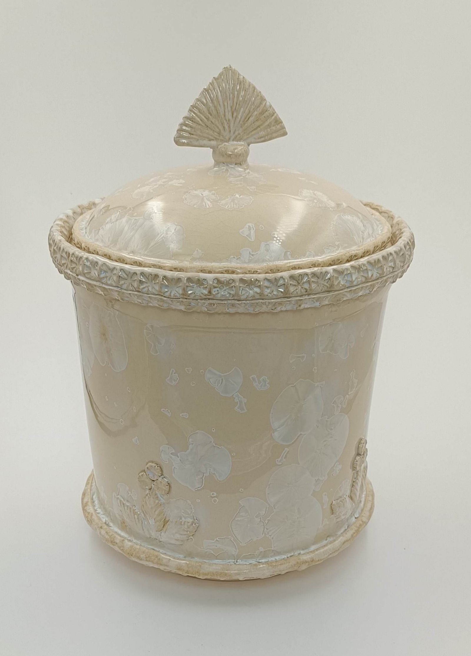 Ši urna gimsta iš kruopščios kristalinės glazūros technikos, kuri leidžia paviršiuje