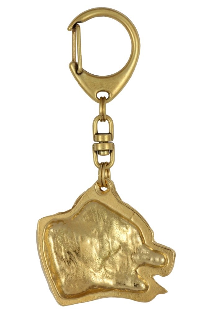 Dekoratyvinėje dovanų dėžutėje esantis raktų pakabukas bus unikali dovana mylimam žmogui. Mūsų aukštos klasės pakabukai pagaminti lenkų menininko, skiriant dėmesį detalėms ir tipiškiems šunų veislės bruožams. Metalinis pakabukas yra labai patvarus, o kadangi padengtas aukso sluoksniu, jis taip pat yra elegantiškas ir prabangus. Jis pravers ne tik kaip raktų pakabukas, bet ir kaip unikali rankinės ar kuprinės puošmena. Šis gaminys yra ne tik praktiškas įtaisas, bet ir unikalus aksesuaras, kuris visada patraukia šunų mylėtojų akį. Jis turi patogų ir lengvai naudojamą užsegimą, garantuojantį, kad raktų pakabukas savaime neatsiskirs.