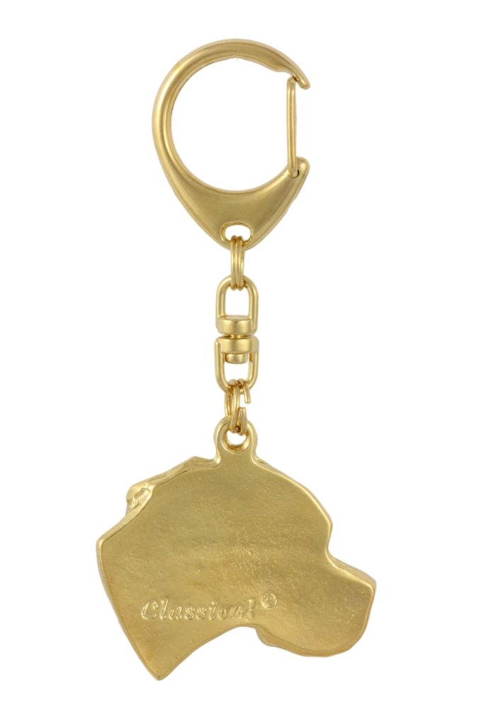 Dekoratyvinėje dovanų dėžutėje esantis raktų pakabukas bus unikali dovana mylimam žmogui. Mūsų aukštos klasės pakabukai pagaminti lenkų menininko, skiriant dėmesį detalėms ir tipiškiems šunų veislės bruožams. Metalinis pakabukas yra labai patvarus, o kadangi padengtas aukso sluoksniu, jis taip pat yra elegantiškas ir prabangus. Jis pravers ne tik kaip raktų pakabukas, bet ir kaip unikali rankinės ar kuprinės puošmena. Šis gaminys yra ne tik praktiškas įtaisas, bet ir unikalus aksesuaras, kuris visada patraukia šunų mylėtojų akį. Jis turi patogų ir lengvai naudojamą užsegimą, garantuojantį, kad raktų pakabukas savaime neatsiskirs.
