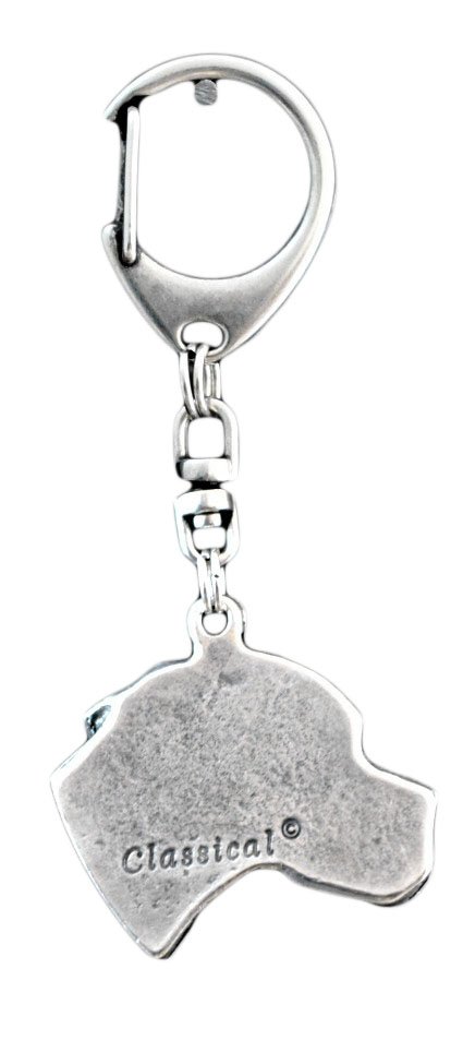 Jei ieškote unikalios, bet neįpareigojančios dovanos šunų mylėtojui, pataikėte į tinkamą pasiūlymą! Šis aukštos kokybės pakabukas, kurį sukūrė ir pagamino lenkų menininkas, neabejotinai sukels šypseną gavėjo lūpose. Pakabukas pasižymi ypatingu tikslumu ir dėmesiu detalėms, kurių dėka tiksliai atkurti būdingi veislės bruožai. Pakabukas pagamintas iš aukštos kokybės cinko ir aliuminio lydinio, todėl mūsų gaminiai yra patvarūs ir atsparūs pažeidimams. Gaminys padengtas sidabro sluoksniu, kuris jam suteikia elegancijos ir gali drąsiai tarnauti kaip originali rankinės ar kuprinės puošmena. Patogus ir patvarus užsegimas užtikrina, kad jie patys neatsiskleis.