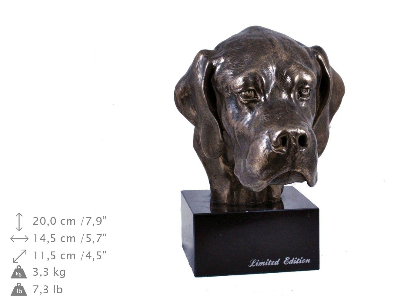 Ši figūrėlė yra tikras išskirtinės ” ” kolekcijos perlas. Ši unikali skulptūrėlė, pagaminta itin kruopščiai, jūsų interjerui suteiks elegancijos. Tai ne tik dekoracija, bet ir įspūdingo meistriškumo išraiška. Kiekvienas kūrinys pagamintas rankomis mažose dirbtuvėse Lenkijoje. Skulptūra šaltuoju būdu liejama iš bronzos, po to rankomis apdirbama ir tvirtinama ant tvirto akmeninio pagrindo. Statula suteiks puošnumo jūsų biurui, svetainei ir kitiems interjerams. Ji taip pat bus puikus prisiminimas apie jūsų mylimą augintinį ir švelni duoklė jam.