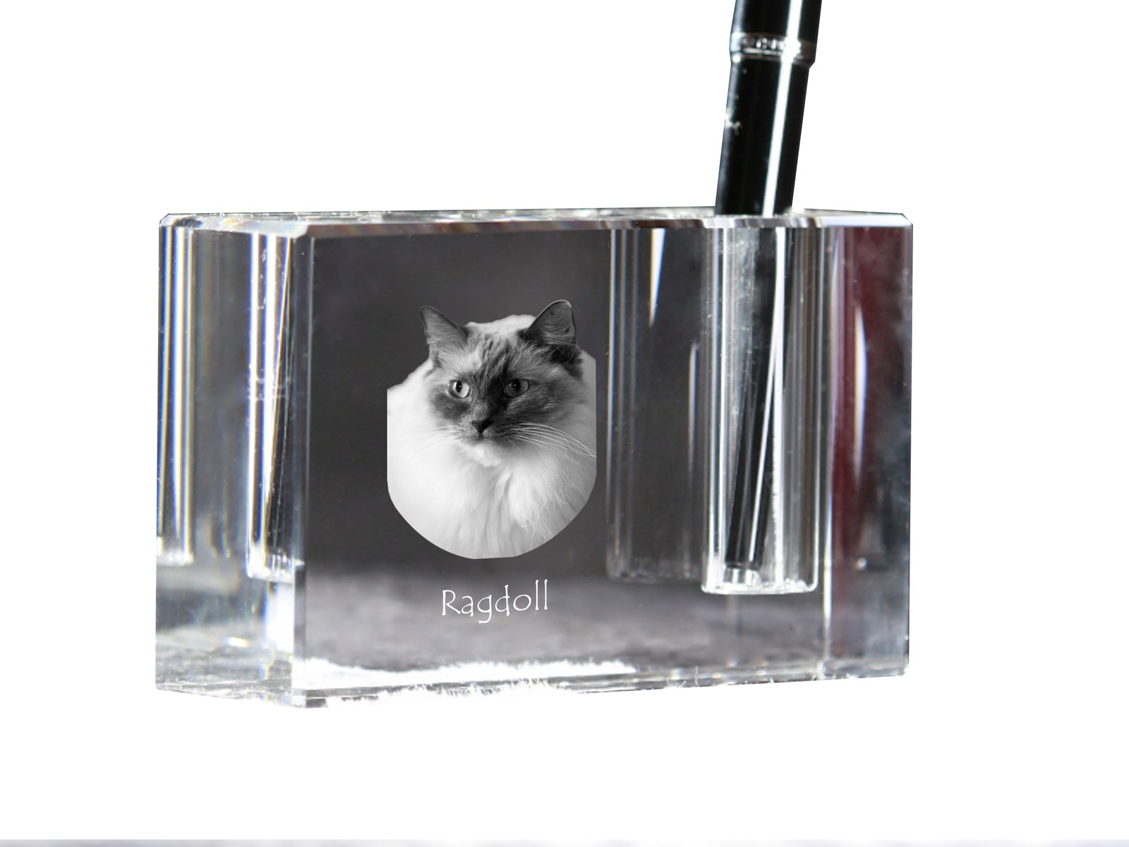 Šis elegantiškas rašiklių stovas yra unikalus rašomojo stalo aksesuaras, pagamintas iš aukštos kokybės krištolo. Papuoštas žavingu augintinio paveikslėliu, jis traukia akį ir suteikia asmeniškumo bet kuriai darbo vietai. Stovas turi vieną rašiklio lizdą, todėl idealiai tinka vertinantiems tvarką ir minimalizmą. Be to, yra galimybė jį personalizuoti su savo augintinio nuotrauka, todėl tai puiki dovana įvairiomis progomis. Dėl kompaktiško dydžio ir stilingo dizaino jis puikiai dera prie bet kokio interjero.