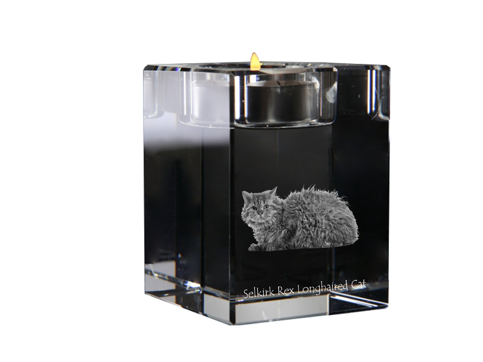 Selkirk Rex katės (Selkirk Rex) – Žvakidė su katės nuotrauka