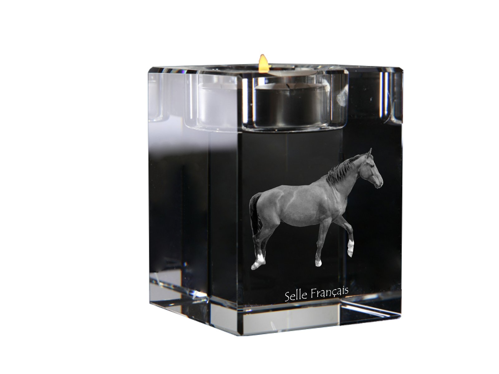 Pradžia Gyvūnams Arkliams Selle Francais – Žvakidė su žirgo paveikslėliu
