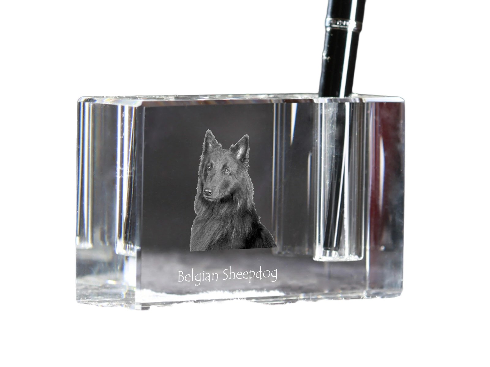 Šis elegantiškas rašiklių stovas yra unikalus rašomojo stalo aksesuaras, pagamintas iš aukštos kokybės krištolo. Papuoštas žavingu augintinio paveikslėliu, jis traukia akį ir suteikia asmeniškumo bet kuriai darbo vietai. Stovas turi vieną rašiklio lizdą, todėl idealiai tinka vertinantiems tvarką ir minimalizmą. Be to, yra galimybė jį personalizuoti su savo augintinio nuotrauka, todėl tai puiki dovana įvairiomis progomis. Dėl kompaktiško dydžio ir stilingo dizaino jis puikiai dera prie bet kokio interjero.