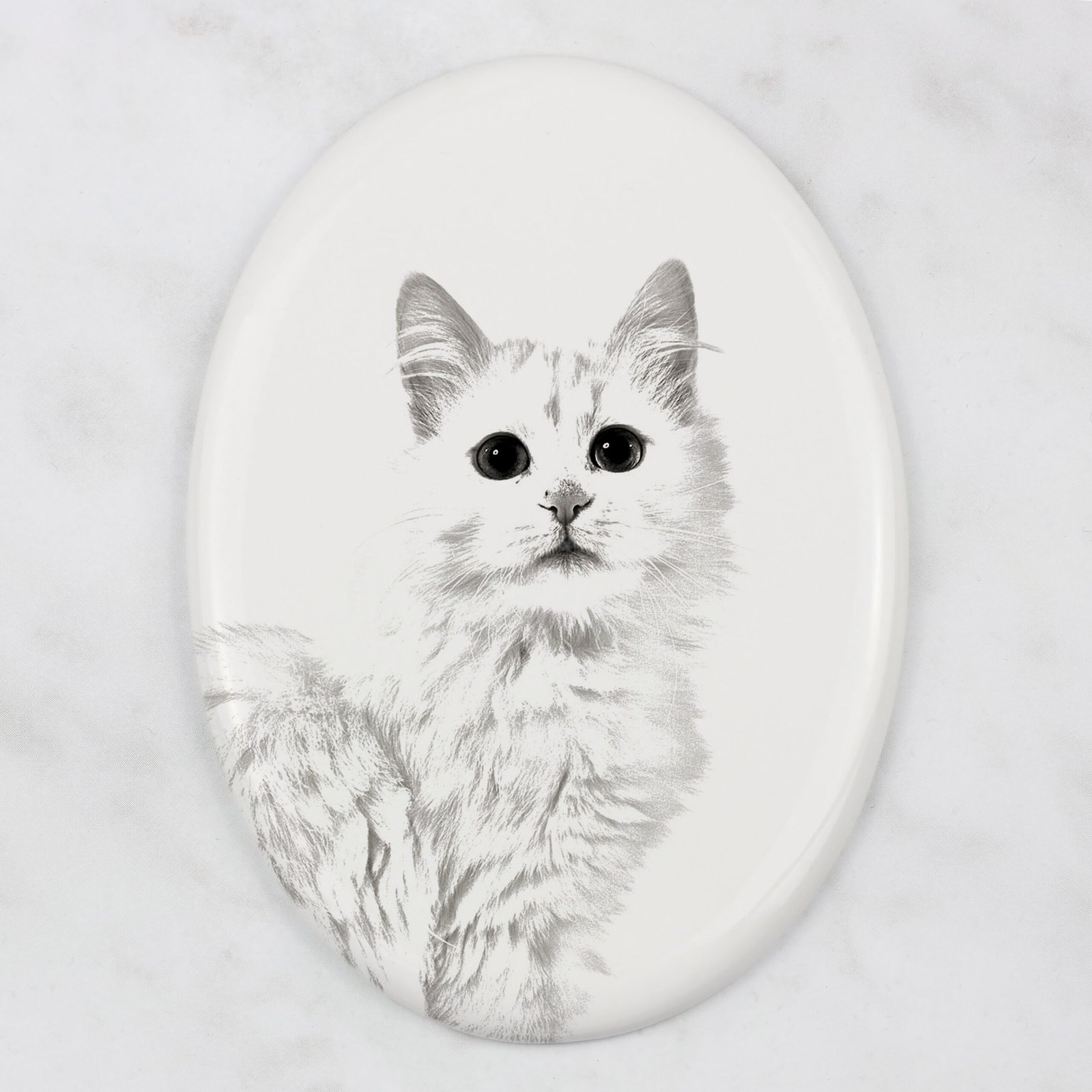 Pasiūloje yra paruošti šunų, kačių ir arklių atvaizdų projektai. Plytelės yra pritaikomos – galime atspausdinti tavo augintinio nuotrauką. Atspaudą atliksime pagal tavo nurodymus arba spalvotą, arba pakeistą į „pieštuko eskizo” versiją, matomą šioje pasiūloje. Ant plytelės taip pat galime užrašyti tavo augintinio vardą ir gyvenimo laikotarpį.