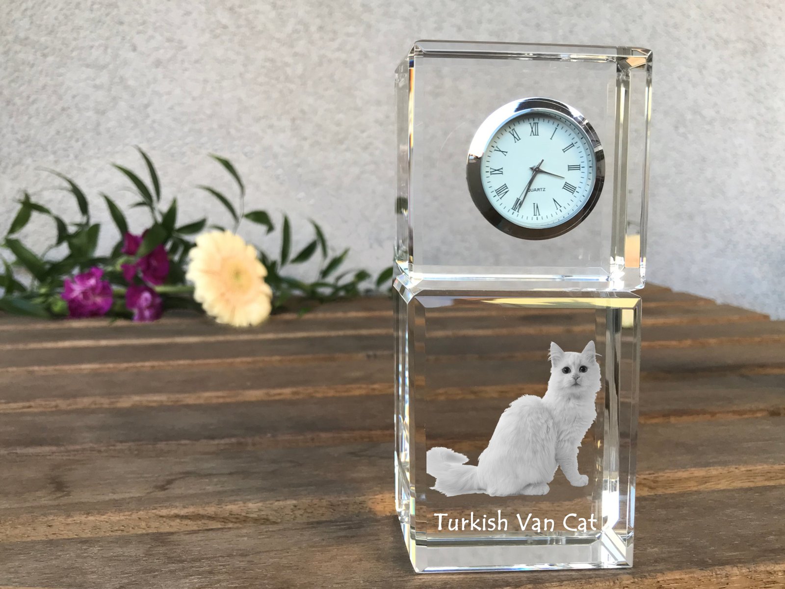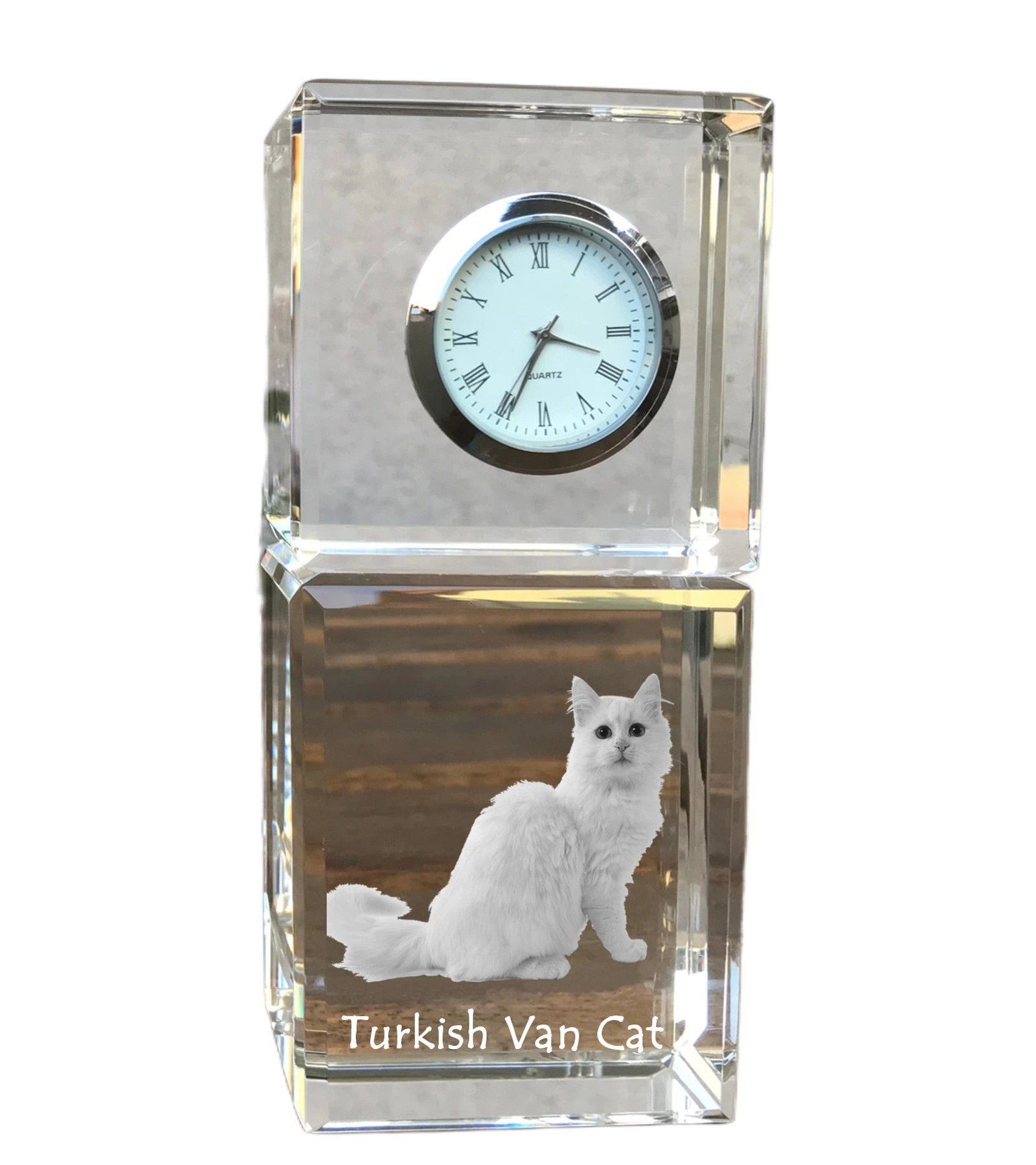 Turkų van katė (Turkish Van) – Krištolo laikrodis su nuotrauka