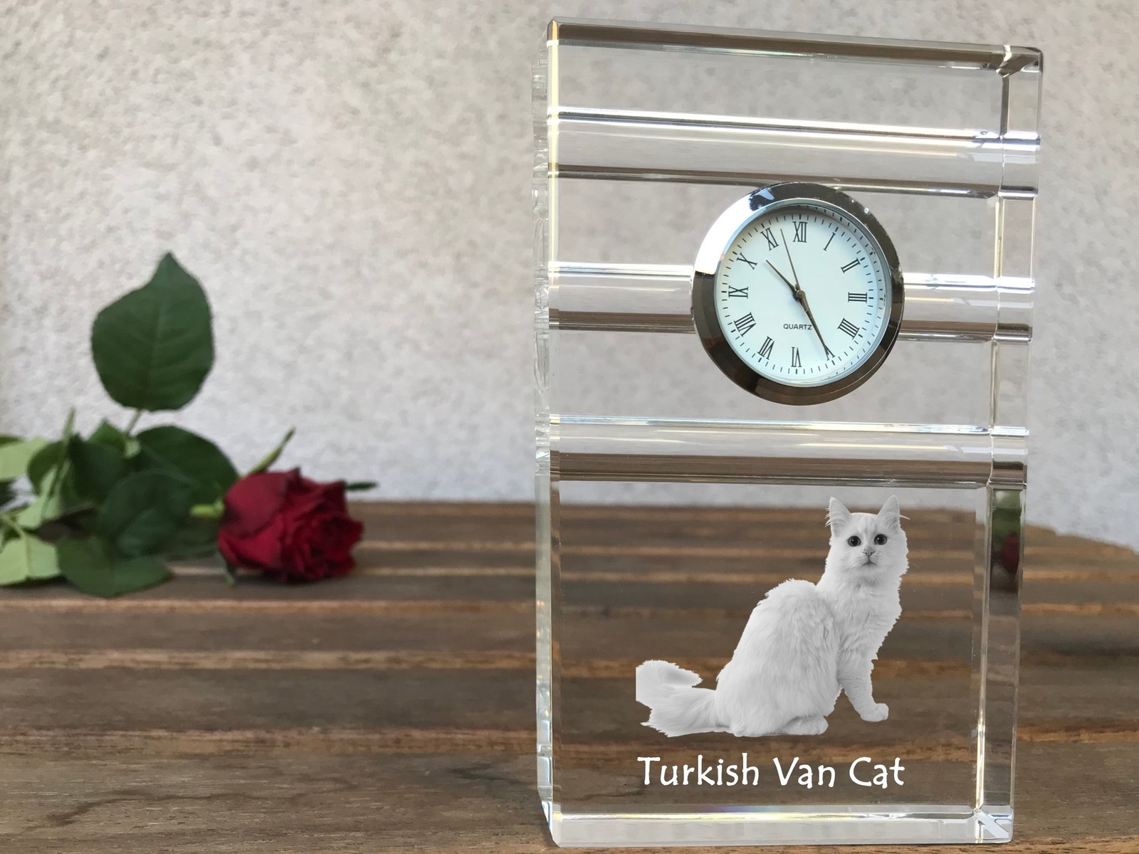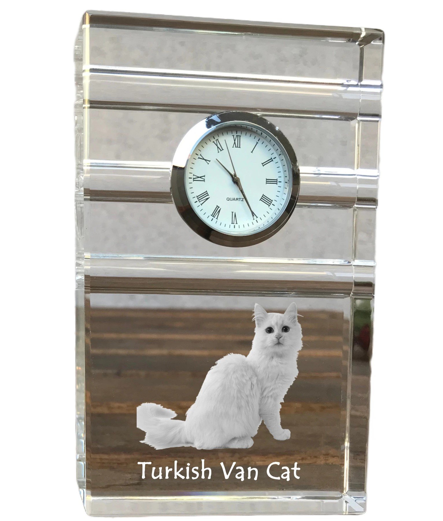 Pradžia Gyvūnams Katėms Turkų van katė (Turkish Van) – Stiklinis laikrodis su nuotrauka