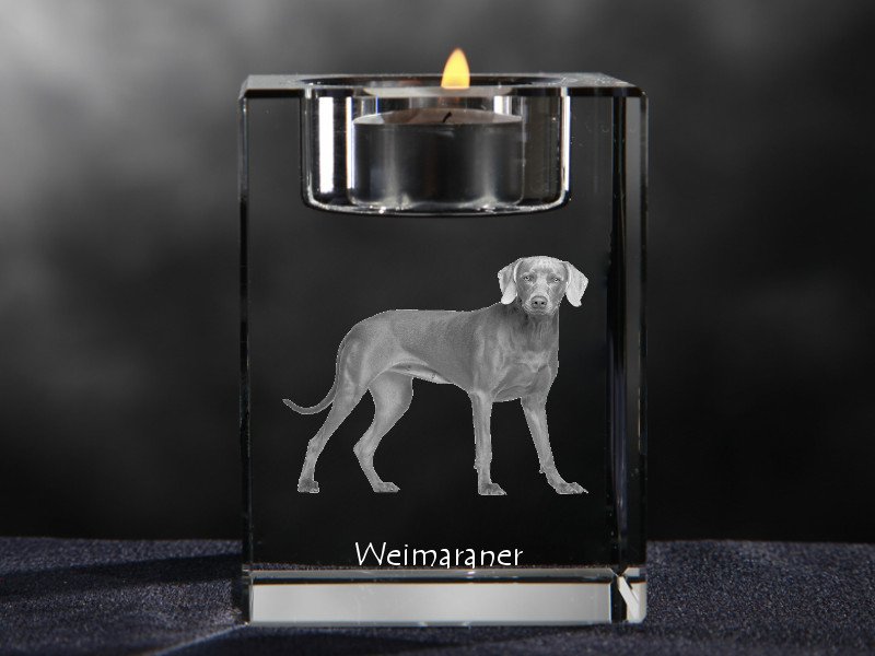 Pradžia Gyvūnams Šunims Veimaro paukštšunis (Veimaraneris, Weimaraner) – Žvakidė su šuns nuotrauka