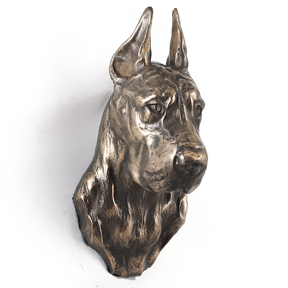Aukštos kokybės kabančių biustų formos statulėles rankomis kuria lenkų menininkas. Jos pasižymi ypatingu atlikimo tikslumu ir dėmesiu detalėms, dėl kurių tiksliai atkurti būdingi veislės bruožai. Gamybai naudojame šaltą bronzą, dėl to mūsų gaminiai yra patvarūs ir gražiai atrodo, bet kartu yra lengvesni ir pigesni nei klasikinė bronza. Statulėlės nugarėlė apsaugota veltiniu ir turi kabliuką, kad statulėlę būtų galima pakabinti ant sienos.