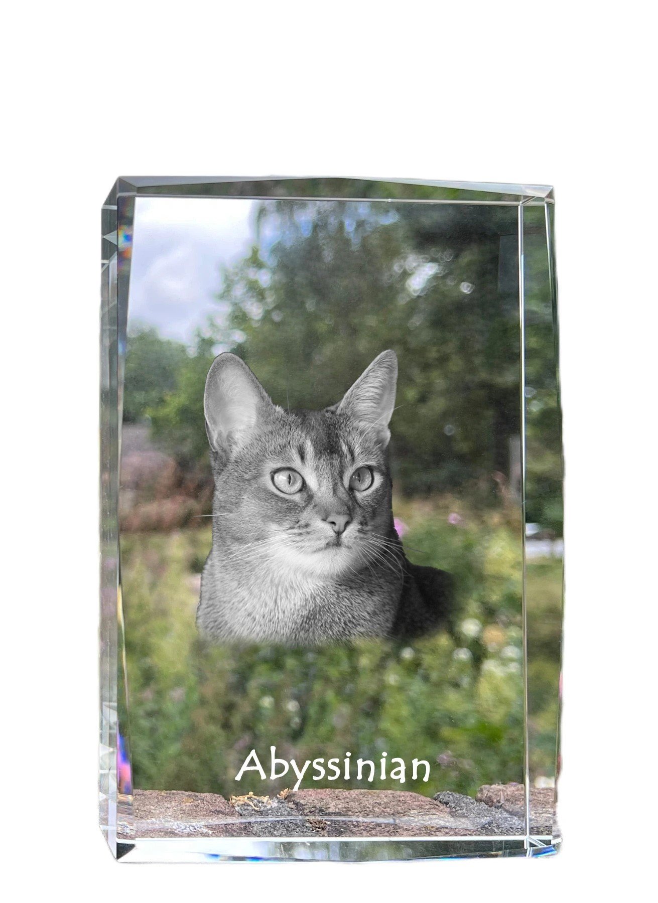 Abisinijos katės (Abyssinian) – Krištolo pakabukas su katės nuotrauka