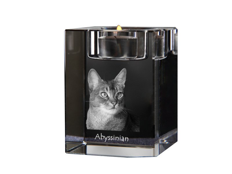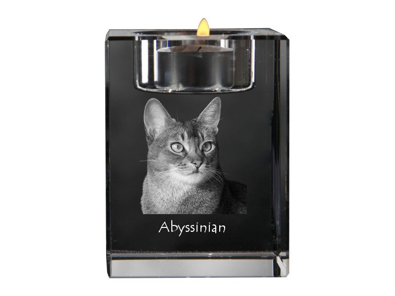 Abisinijos katės (Abyssinian) – Žvakidė su katės nuotrauka