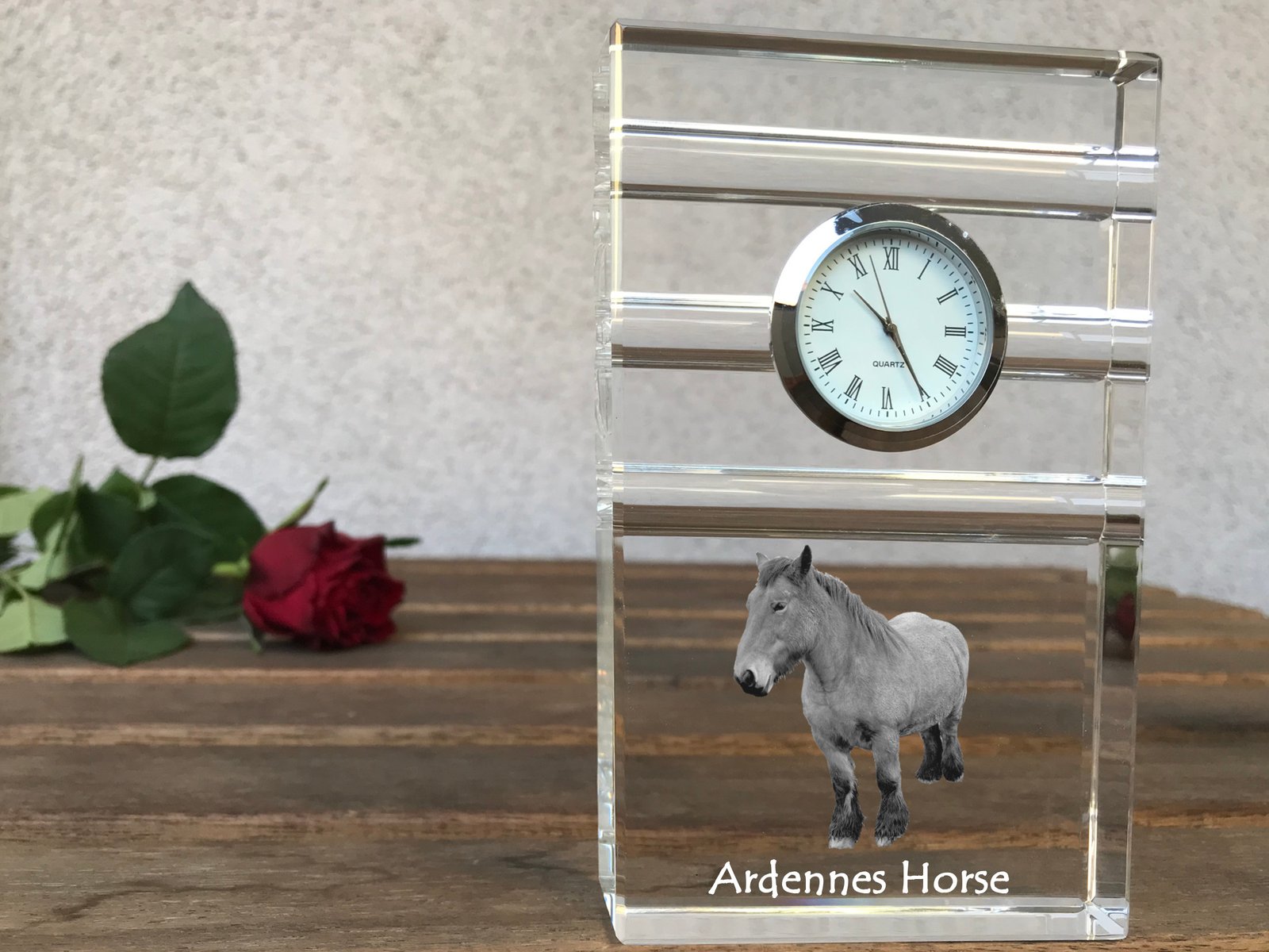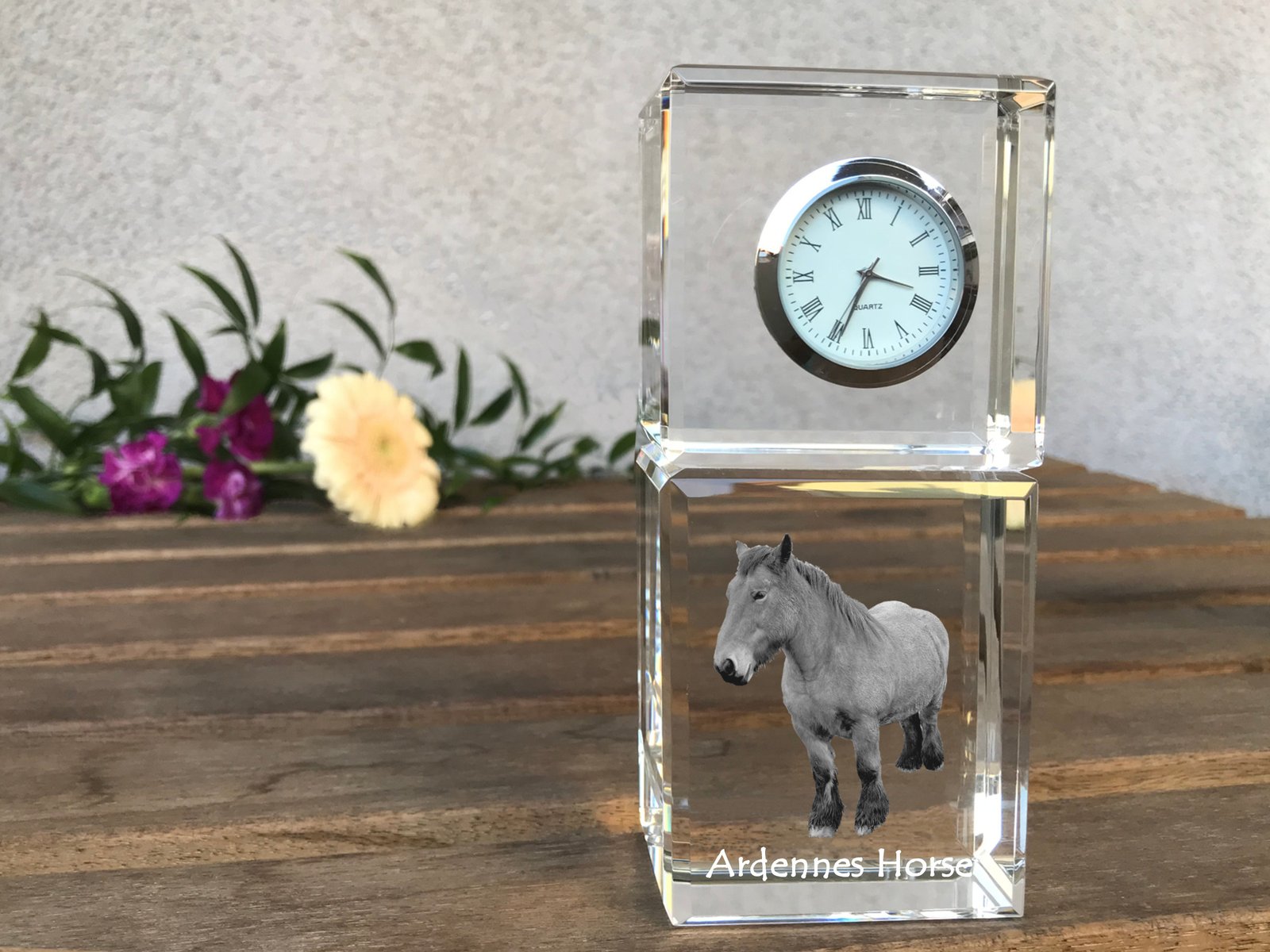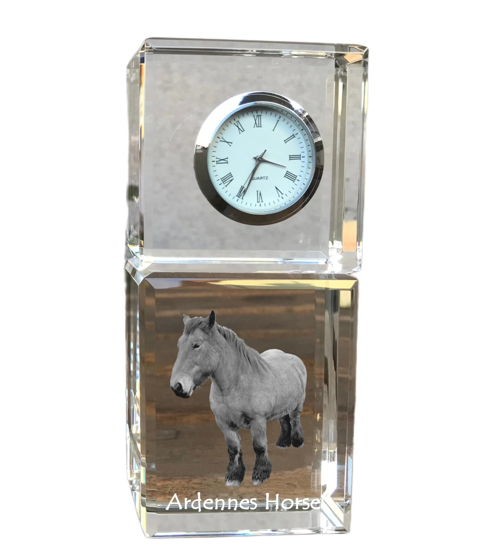 Ardennais (Ardėnų arklys) – Krištolo laikrodis su arklio nuotrauka