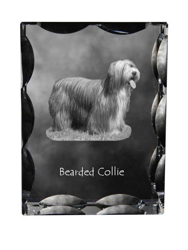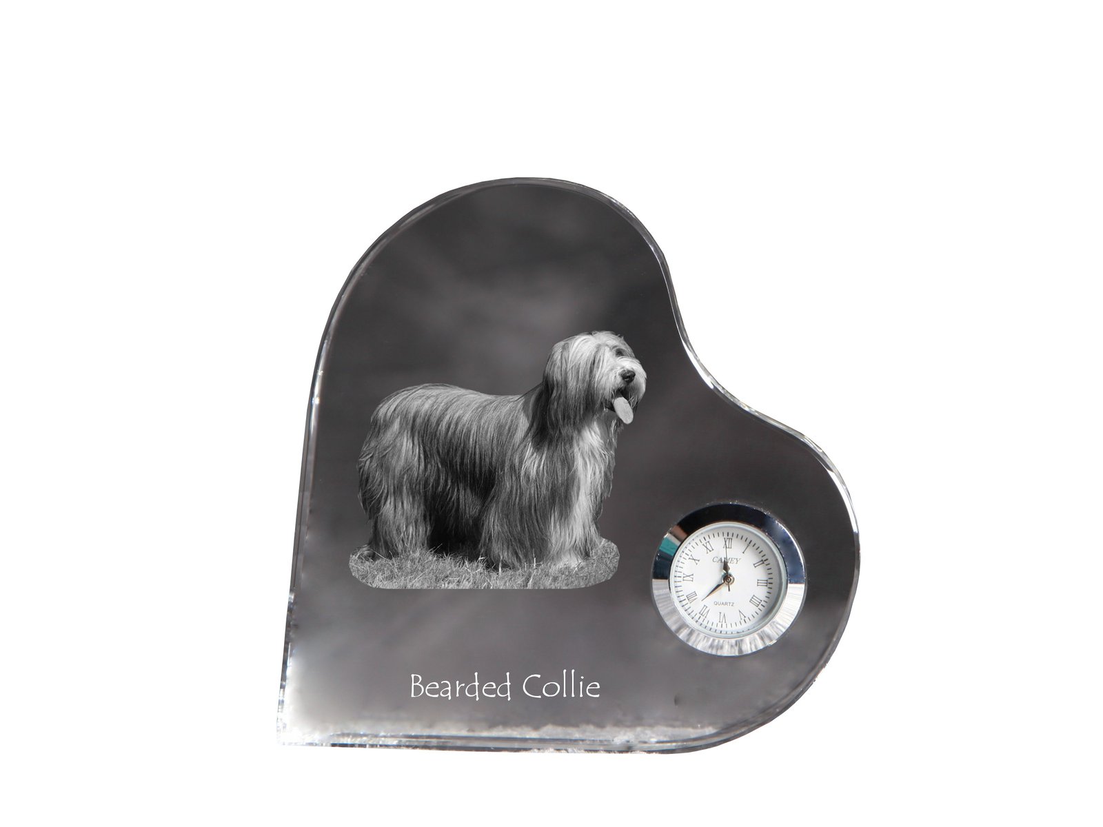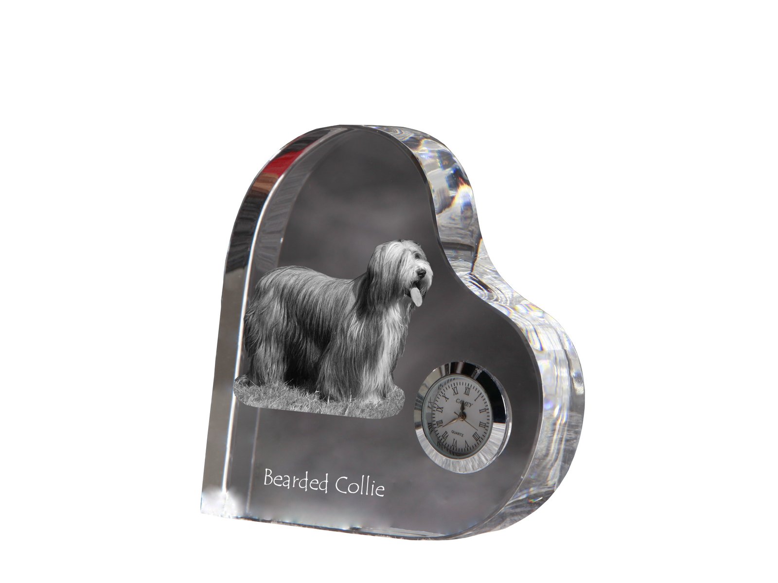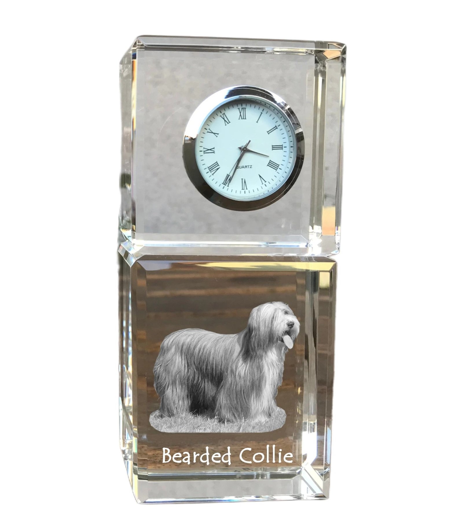 Barzdotasis kolis (Bearded Collie) – Krištolo laikrodis su nuotrauka