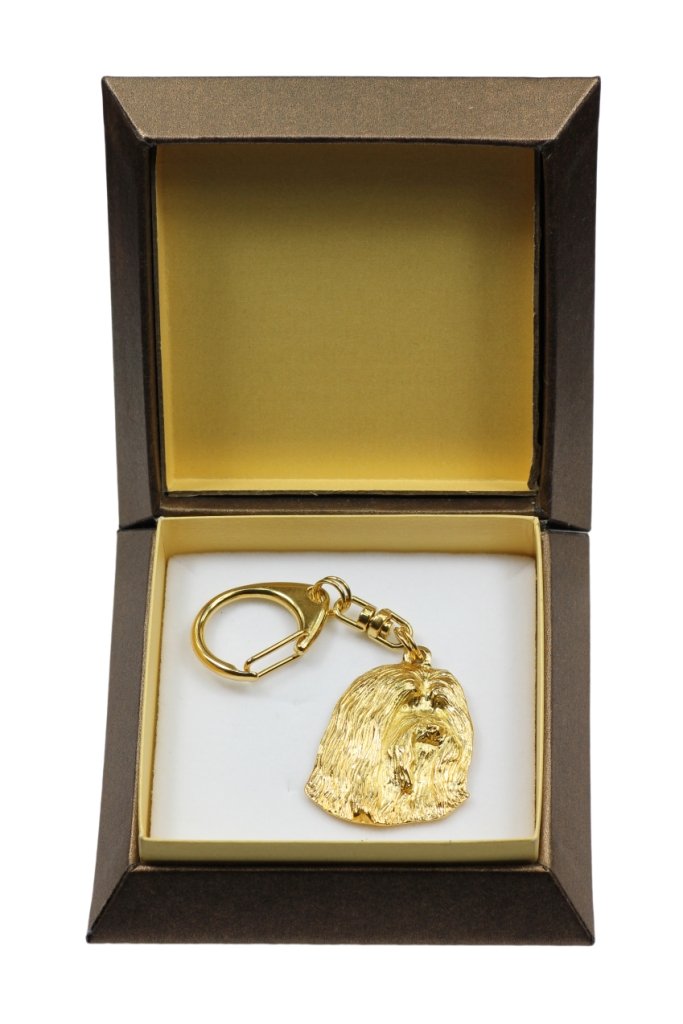 Barzdotasis kolis (Bearded Collie) – Paauksuotas raktų pakabukas dėžutėje