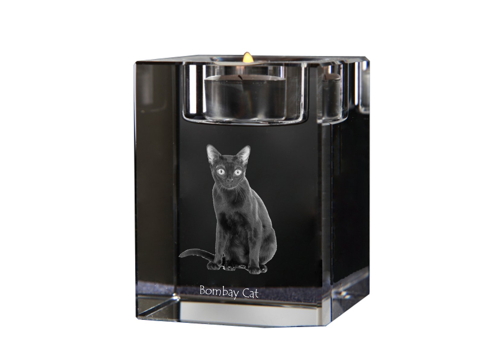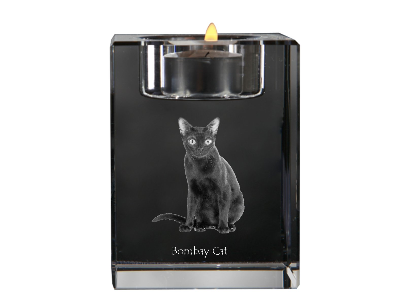 Bombėjaus katė (Bombay cat) – Žvakidė su katės nuotrauka