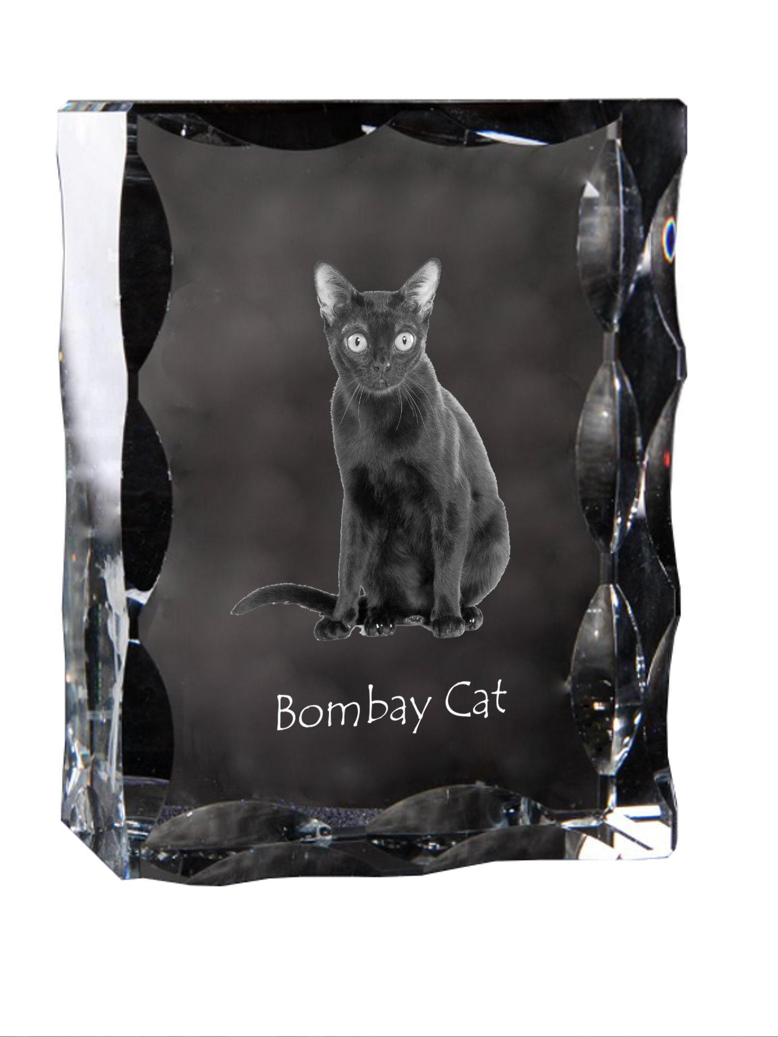 Bombėjaus katė (Bombay cat) – Krištolas su katės nuotrauka