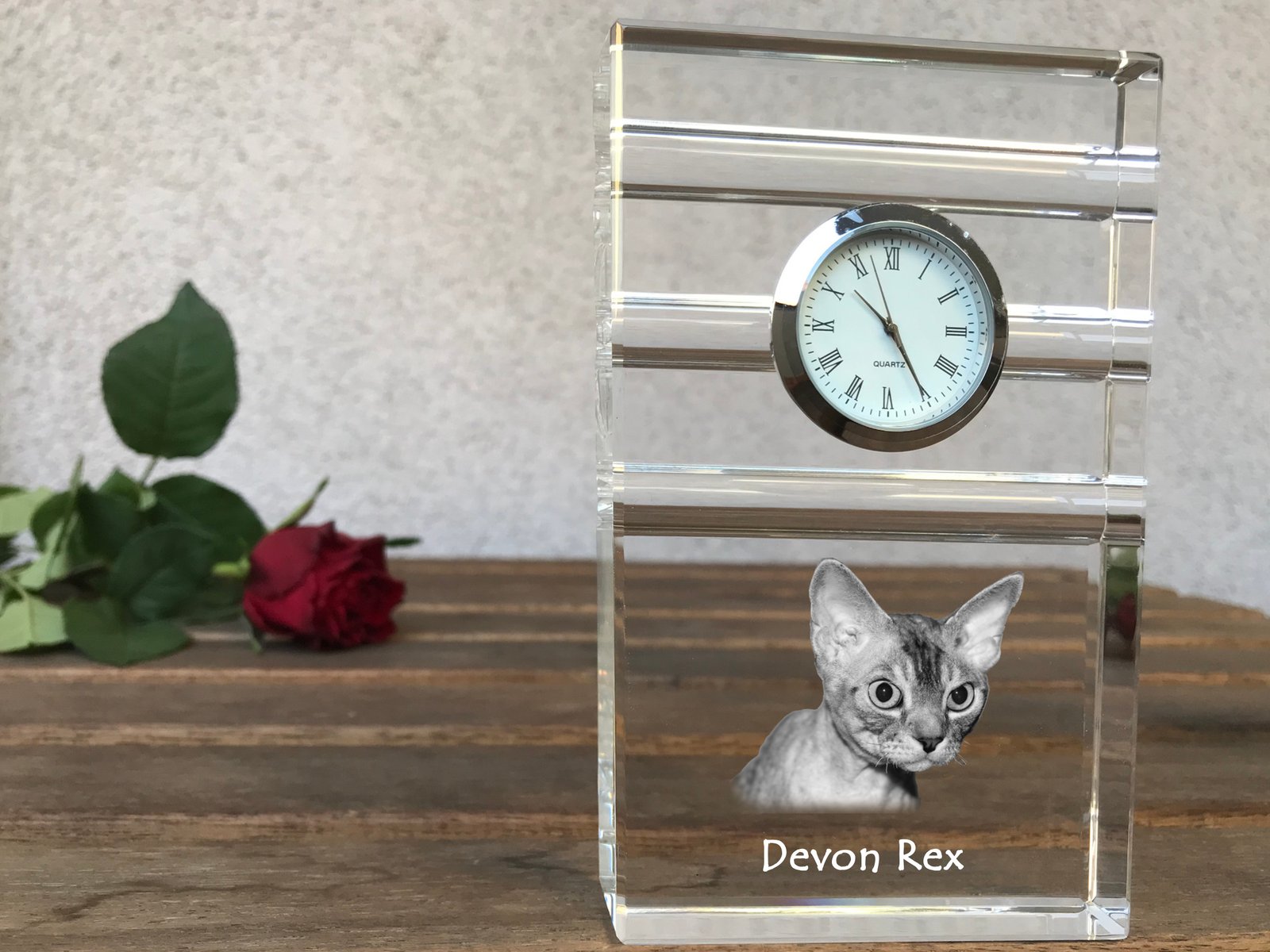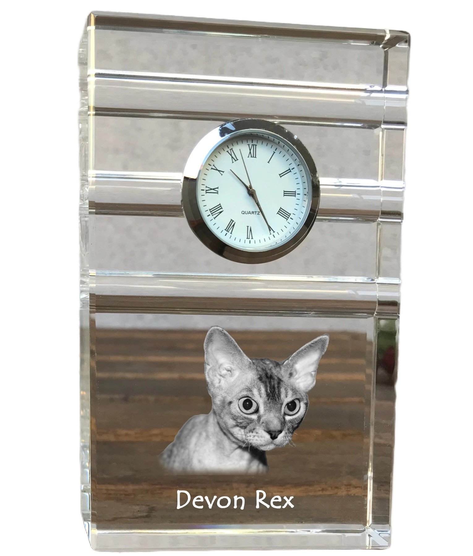 Devonreksas (Devon rex) – Krištolo laikrodis su nuotrauka