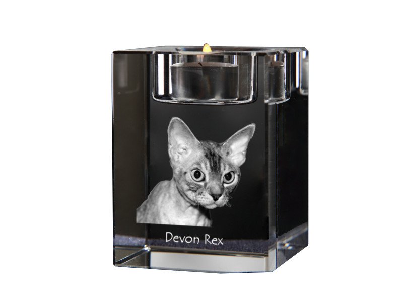 Devonreksas (Devon rex) – Žvakidė su katės nuotrauka