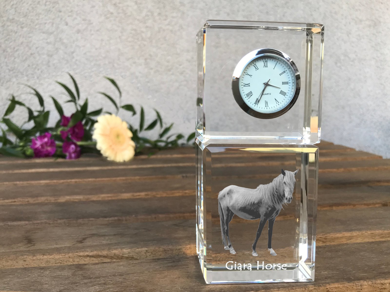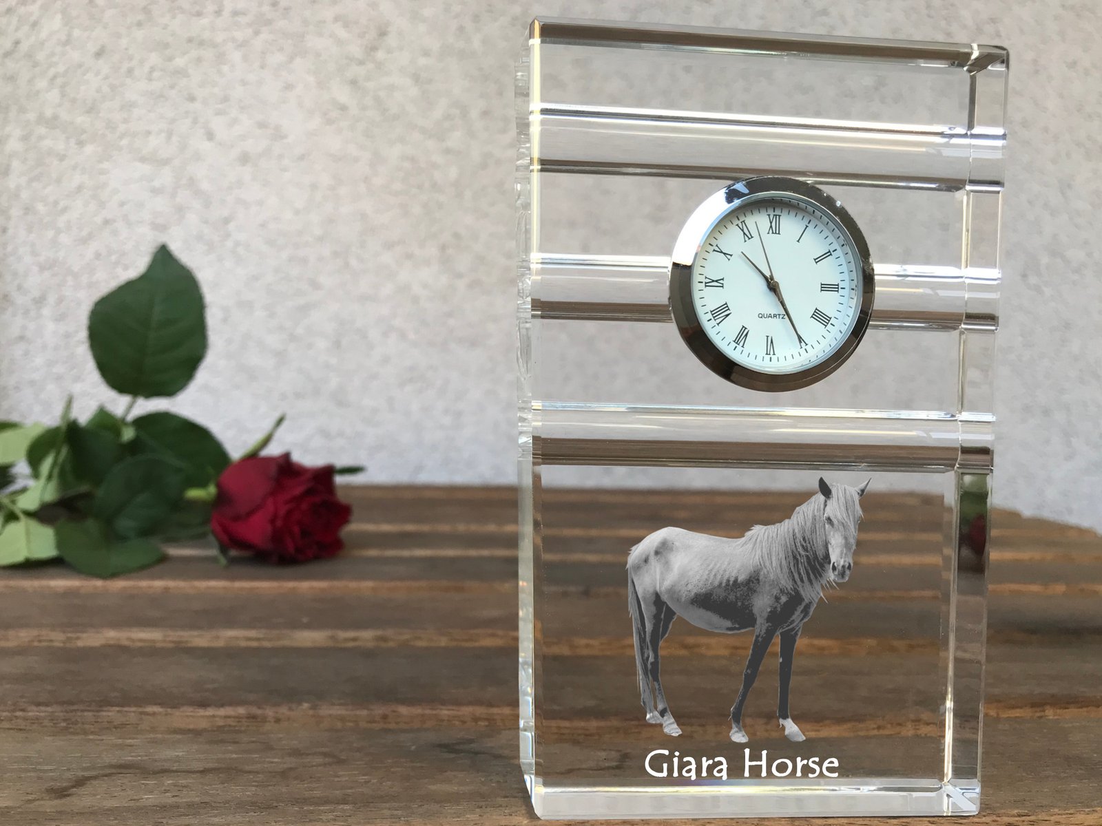 Giara arklys – Krištolo laikrodis su arklio nuotrauka