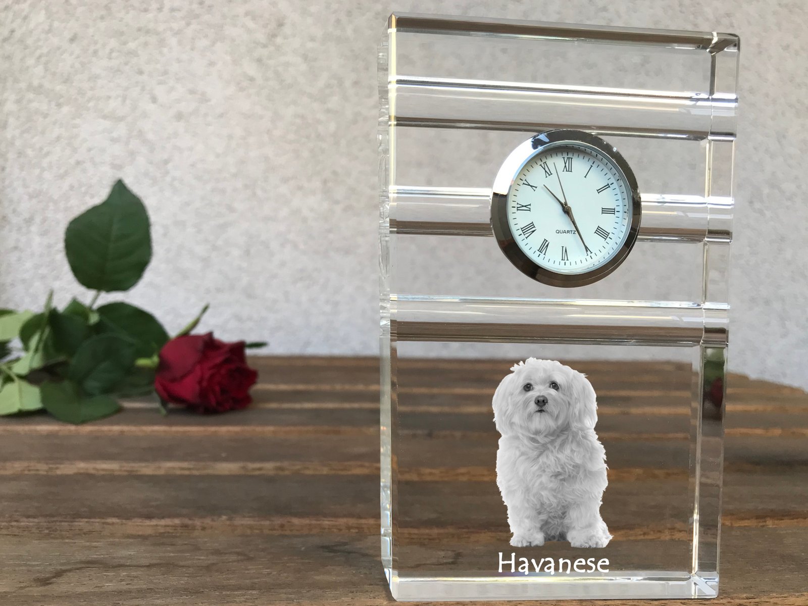 Havanos bišonas (Havanese) – Stiklinis laikrodis su nuotrauka
