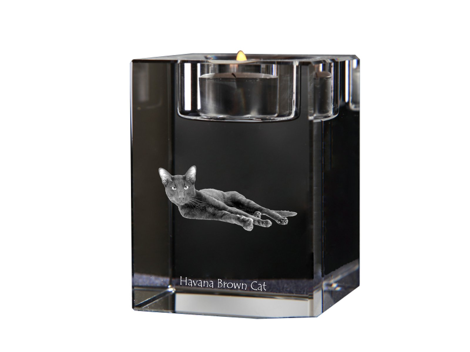 Havanos bišonas (Havanese) – Žvakidė su katės nuotrauka