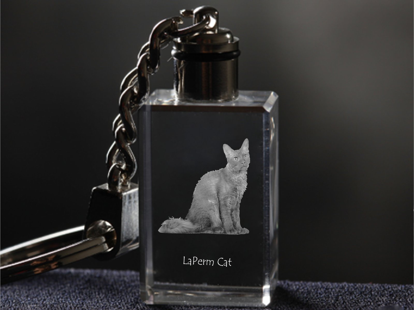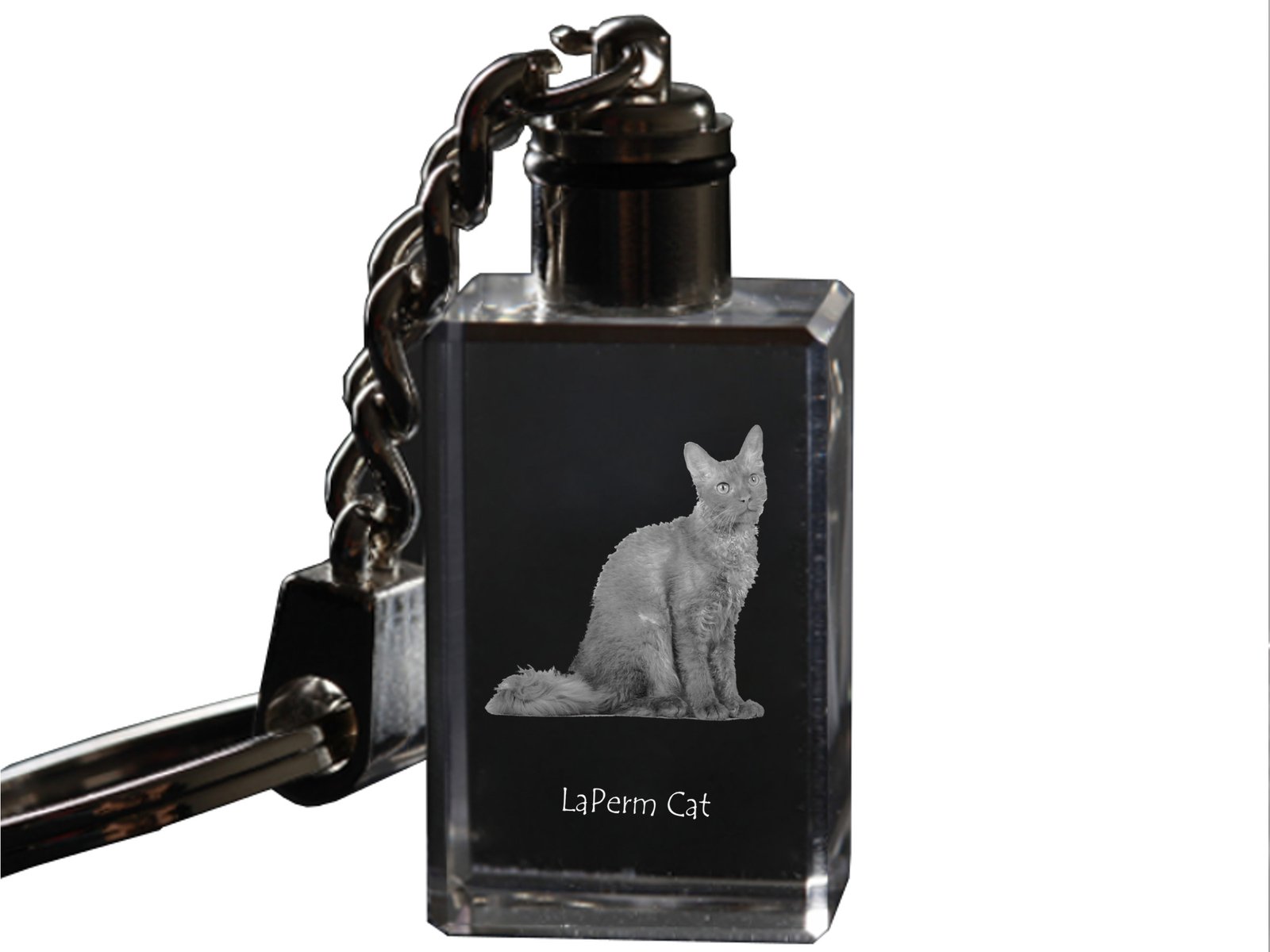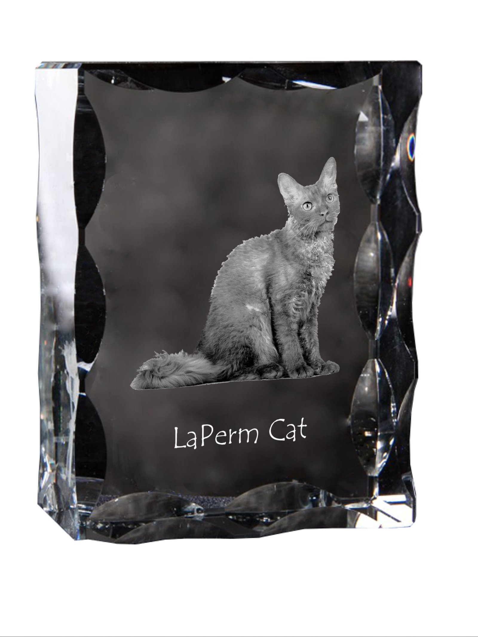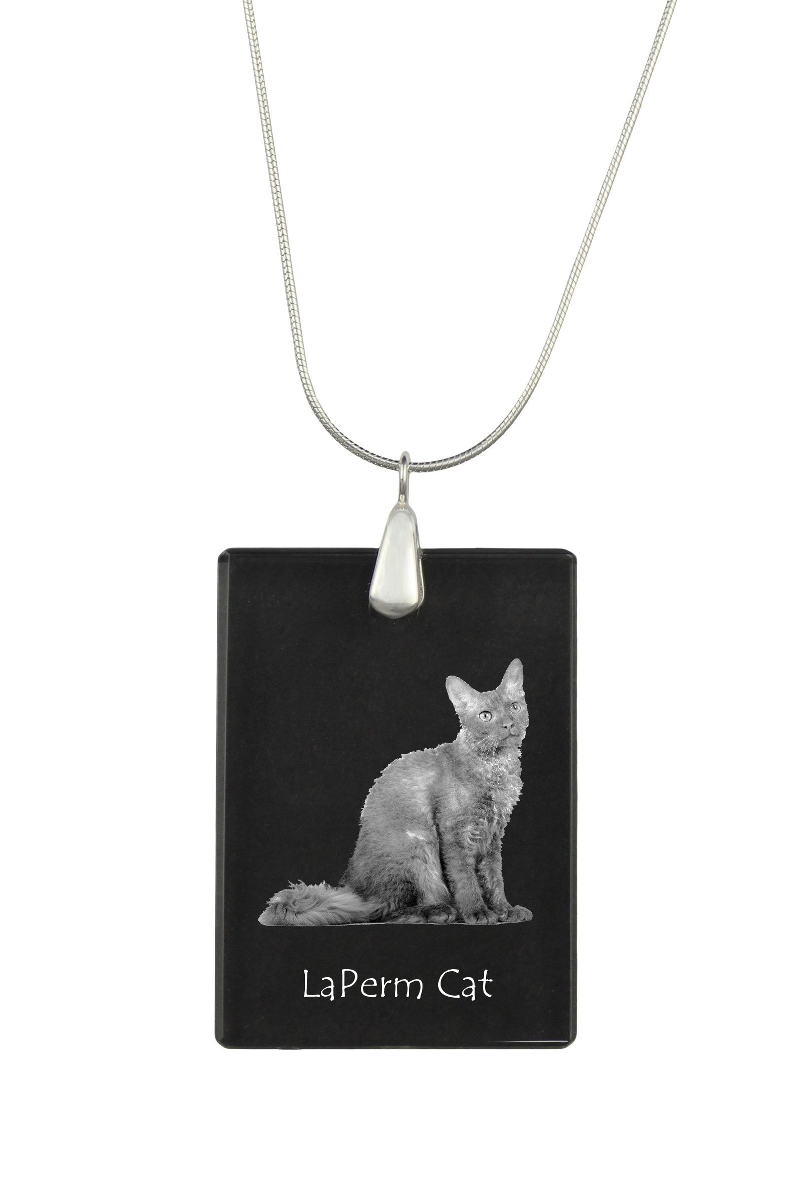 Lapermas (LaPerm) – Krištolo pakabukas su katės nuotrauka