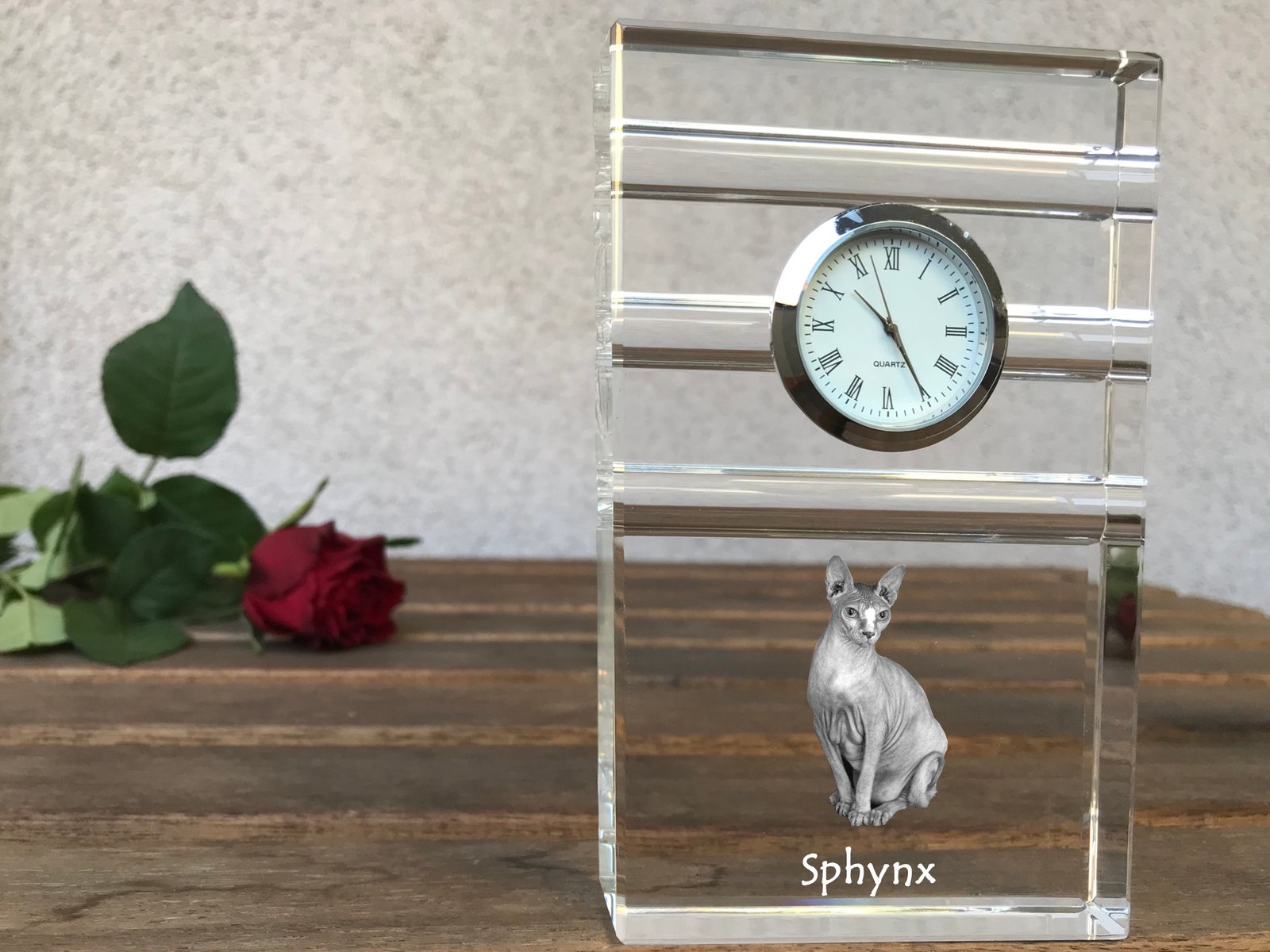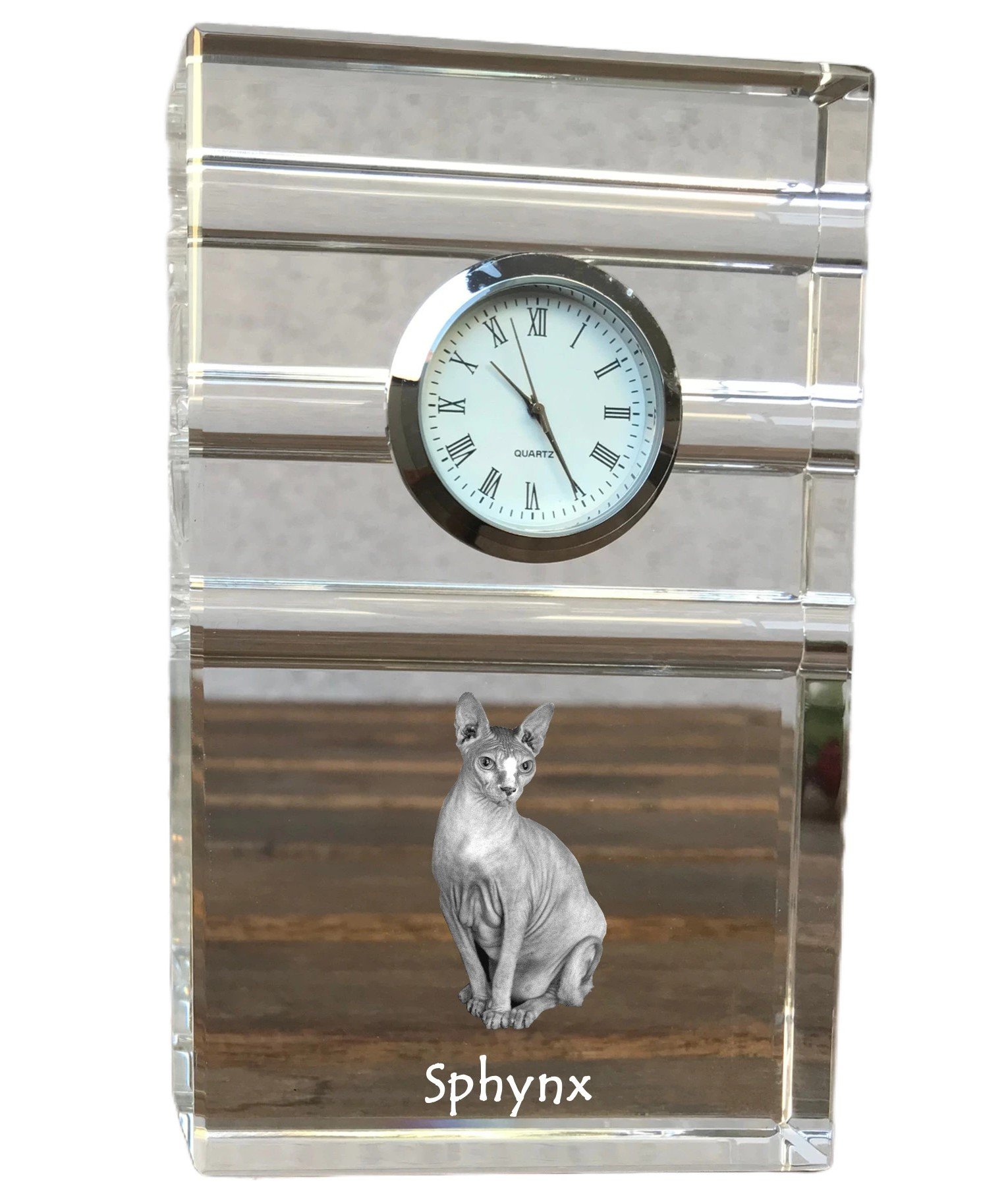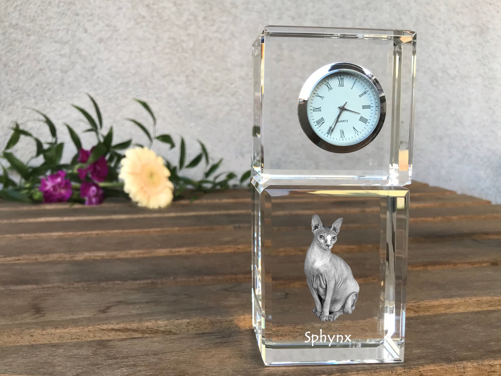 Sfinksas (Sphynx cat) – Krištolo laikrodis su katės nuotrauka