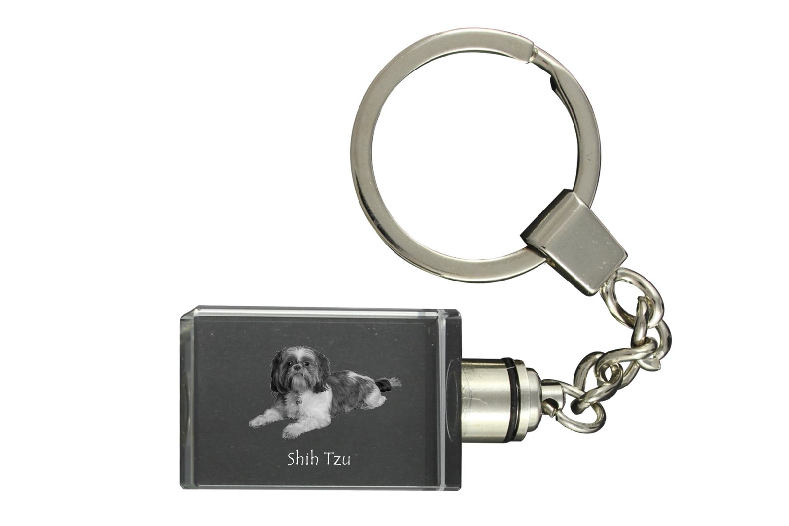 Ši Cu (Shih Tzu) – Krištolinis raktų pakabukas su šuns nuotrauka