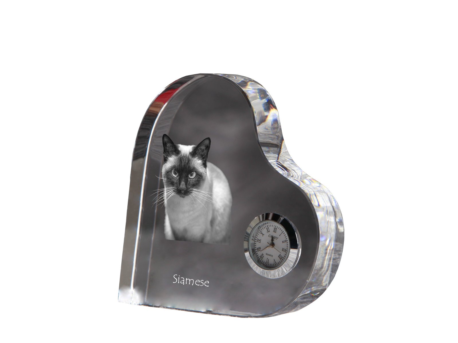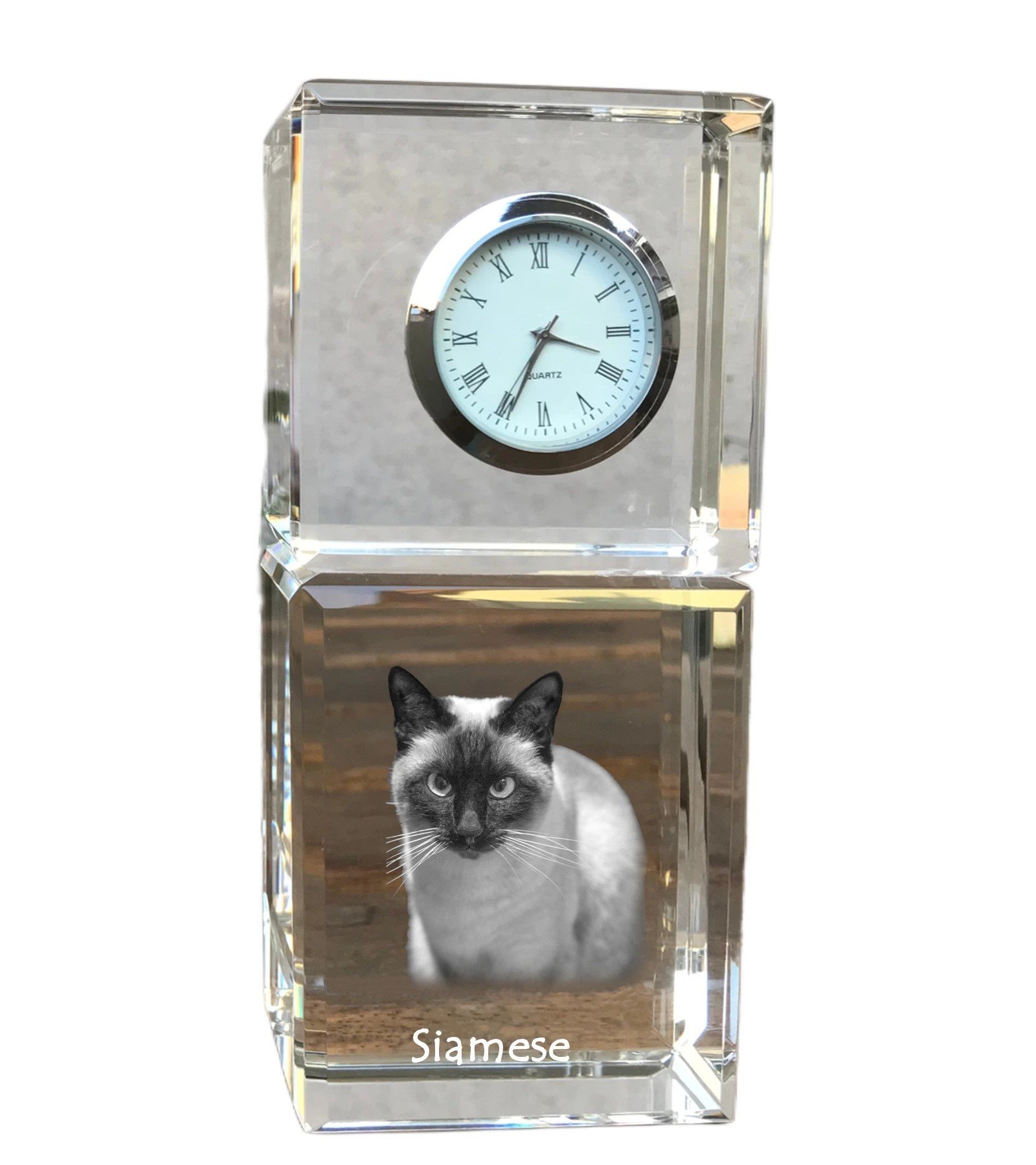 Siamo katės (Siamese)- Krištolo laikrodis su katės nuotrauka