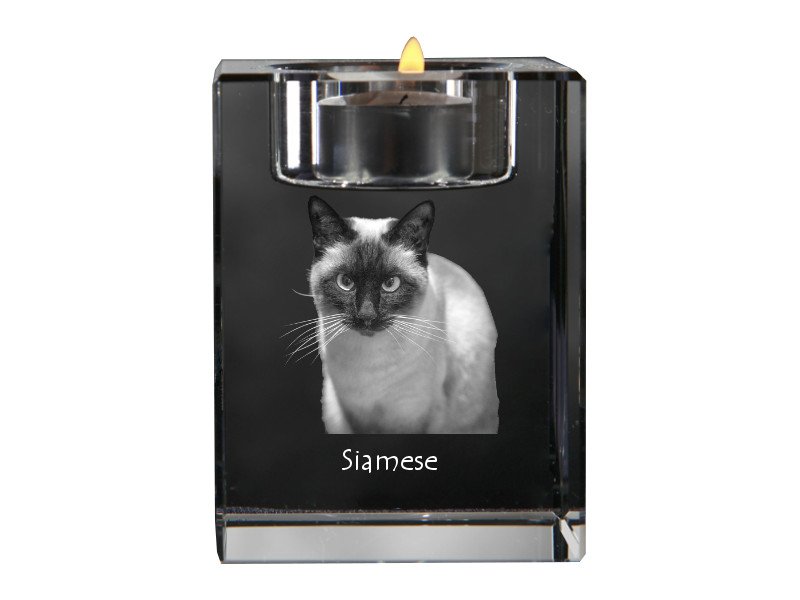 Siamo katės (Siamese)- Žvakidė su katės nuotrauka