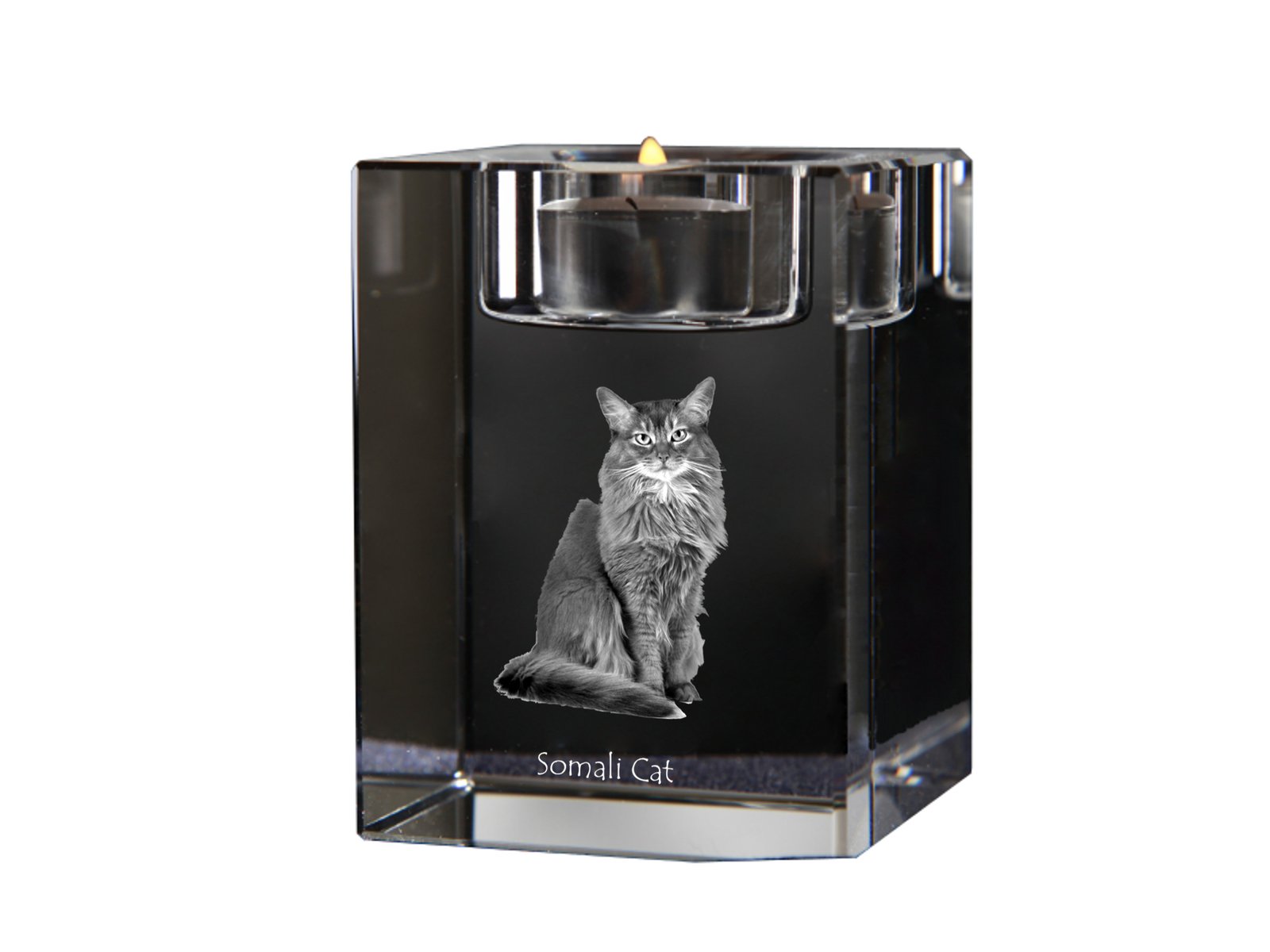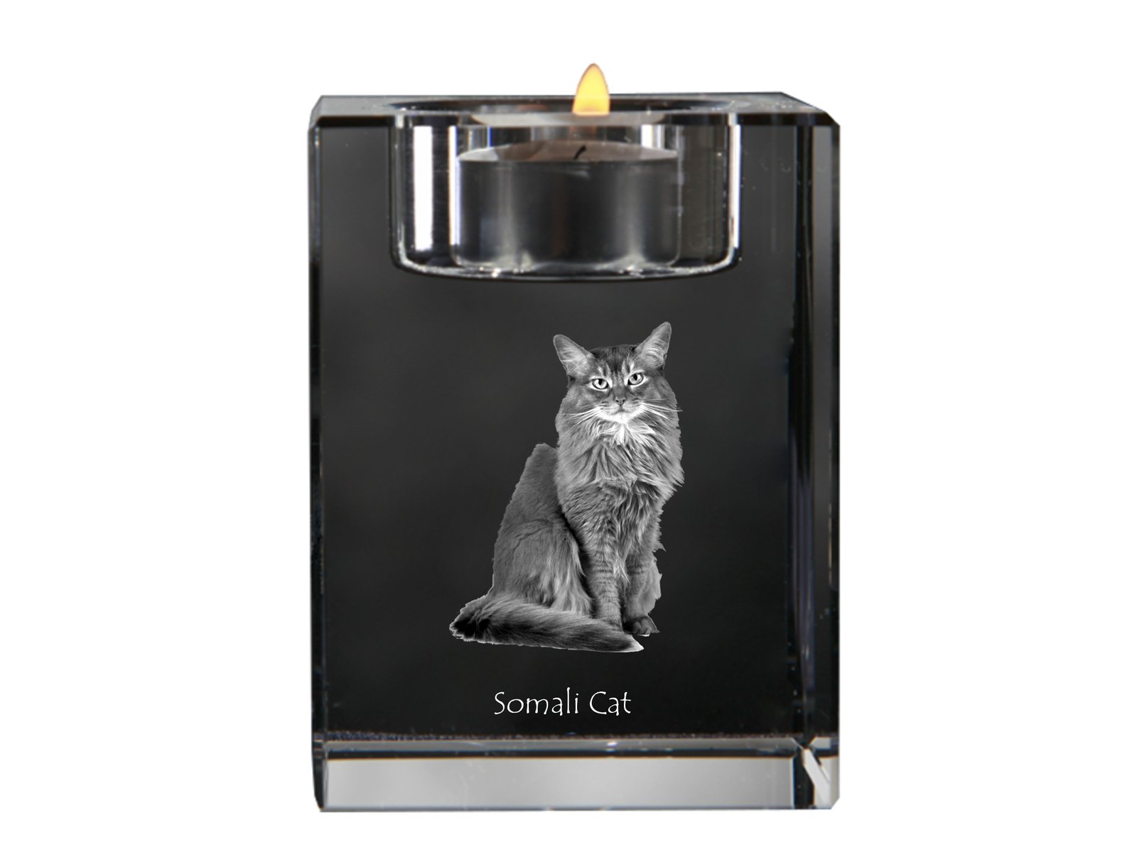 Somalio katės (Somali cat) – Žvakidė su katės nuotrauka
