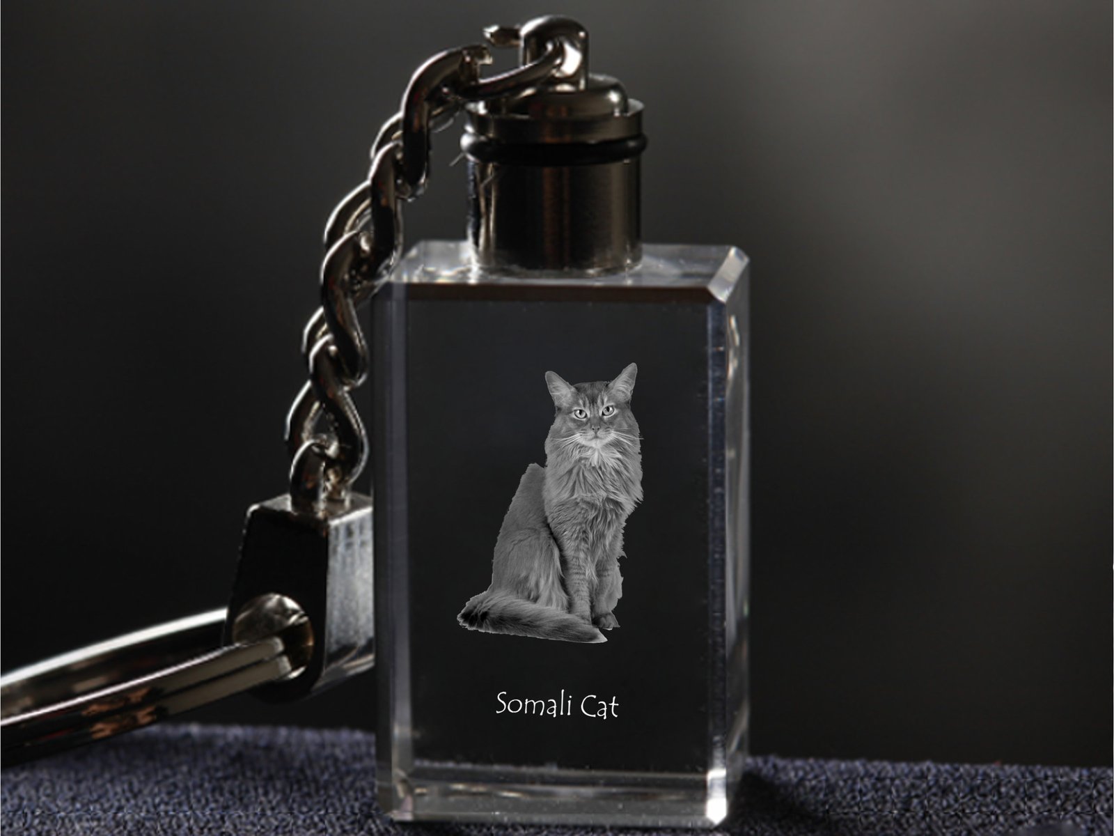 Somalio katės (Somali cat) – Krištolo pakabukas su katės nuotrauka